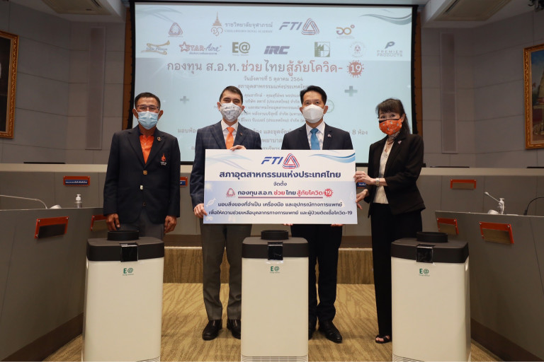 “กองทุน ส.อ.ท. ช่วยไทยสู้ภัยโควิด-19” ส่งมอบชุดจัดทำห้องความดันลบแบบติดตั้งถาวร จำนวน 8 ชุด และห้องความดันลบแบบเคลื่อนย้ายได้ จำนวน 3 ห้อง มูลค่า 630,000 บาท ให้โรงพยาบาลจุฬาภรณ์ โดยมี นายสุพันธุ์ มงคลสุธี ประธานสภาอุตสาหกรรมแห่งประเทศไทย พร้อมคณะผู้บริหารฯ ร่วมส่งมอบให้กับ ศาตราจารย์ นายแพทย์นิธิ มหานนท์ เลขาธิการราชวิทยาลัยจุฬาภรณ์ ณ ห้องประชุมใหญ่ MC232 ชั้น 3 อาคารบริหาร 2 สำนักงานราชวิทยาลัยจุฬาภรณ์ เขตหลักสี่ กรุงเทพฯ เพื่อช่วยลดความเสี่ยงของบุคลากรทางการแพทย์และลดการแพร่กระจายเชื้อโควิด-19 นายสุพันธุ์ มงคลสุธี ประธานสภาอุตสาหกรรมแห่งประเทศไทย (ส.อ.ท.) เปิดเผยว่า สภาอุตสาหกรรมฯ ตระหนักถึงปัญหาและผลกระทบจากสถานการณ์การแพร่ระบาดของโควิด-19 จึงได้จัดตั้ง “กองทุน ส.อ.ท. ช่วยไทยสู้ภัยโควิด-19” ภายใต้มูลนิธิพัฒนาอุตสาหกรรม เพื่อระดมทุนจัดหาอุปกรณ์ เครื่องมือ สิ่งของที่จำเป็น ช่วยเหลือและลดความเสี่ยงให้กับบุคลากรทางการแพทย์ลดโอกาสการแพร่กระจายเชื้อโควิด-19 สู่สมาชิก ส.อ.ท.และประชาชน โดยในครั้งนี้เป็นการส่งมอบชุดจัดทำห้องความดันลบแบบติดตั้งถาวร จำนวน 8 ชุด และห้องความดันลบแบบเคลื่อนย้ายได้ จำนวน 3 ห้อง รวมมูลค่าทั้งสิ้น 630,000 บาท ให้กับโรงพยาบาลจุฬาภรณ์นำไปใช้งานเพื่อช่วยเหลือผู้ป่วยโควิด-19 ขอขอบคุณและเป็นกำลังใจให้บุคลากรของโรงพยาบาลจุฬาภรณ์ทุกท่าน ที่เสียสละให้การช่วยเหลือและดูแลผู้ป่วยติดเชื้อให้หายป่วยและสามารถกลับมาดำรงชีวิตได้ตามปกติต่อไป นางพิมพ์ใจ ลี้อิสสระนุกูล รองประธานสภาอุตสาหกรรมแห่งประเทศไทย และประธานกรรมการกองทุน ส.อ.ท. ช่วยไทยสู้ภัยโควิด-19 กล่าวเสริมว่า “กองทุน ส.อ.ท. ช่วยไทยสู้ภัยโควิด-19” ได้รับระดมทุนเพื่อจัดหาอุปกรณ์ที่จำเป็นในสถานการณ์วิกฤตครั้งนี้ ได้แก่ ห้องความดันลบแบบเคลื่อนย้ายได้ พัฒนาโดยสถาบันวิจัยแสงซินโครตรอน (องค์การมหาชน) กระทรวงการอุดมศึกษา วิทยาศาสตร์ วิจัยและนวัตกรรมร่วมกับกลุ่มอุตสาหกรรมไฟฟ้าและอิเล็กทรอนิกส์ และกลุ่มอุตสาหกรมเครื่องปรับอากาศ,ชุดจัดทำห้องความดันลบแบบติดตั้งถาวร พัฒนาโดยบมจ.พลังงานบริสุทธิ์, ชุดตรวจ ATK และกล่องห่วงใยจากใจ ส.อ.ท. โดยปัจจุบันได้รับเงินบริจาคเป็นจำนวนทั้งสิ้น 38,063,394 บาท (ณ วันที่ 20 กันยายน 2564) ทั้งนี้ ส.อ.ท.ขอเชิญร่วมบริจาคเงินเพื่อจัดหาห้องความดันลบช่วยเหลือผู้ป่วยโควิด-19 ได้ที่ชื่อบัญชี มูลนิธิพัฒนาอุตสาหกรรม เลขที่บัญชี 009-1-71583-0 ธนาคารกรุงไทยสาขาไทยเบฟควอเตอร์ (ใบบริจาคสามารถนำไปลดหย่อนภาษีได้) สอบถามเพิ่มเติมได้ที่ สายด่วน ส.อ.ท. หมา