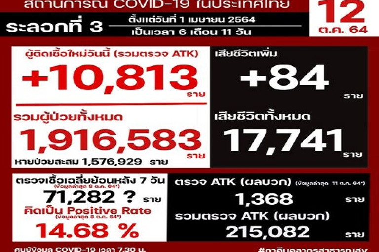***ข้อมูลล่าสุดที่เป็นทางการยังอยู่เเค่วันที่ 8 ต.ค. 2564 จำนวน 71,282 ราย