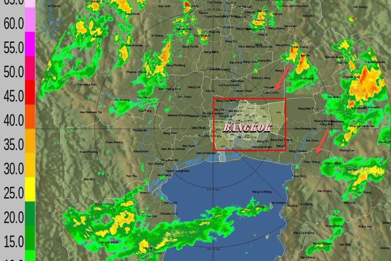 ทั้งนี้ จากภาพเรดาร์ จะเห็นมีกลุ่มฝนกระจายอยู่รายล้อมกทม.และปริมณฑล แต่พบมีเฉพาะทางด้านขวามือของภาพที่คาดว่าจะมีผลกระทบกับพื้นที่กทม. ซึ่งต้องลุ้นกันว่าในค่ำคืนนี้จะเข้าพื้นที่ กทม.หรือไม่