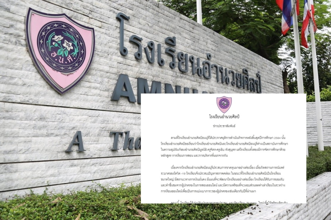 โรงเรียนอำนวยศิลป์ มีประกาศแจ้งว่า ตามที่โรงเรียนอำนวยศิลป์ธนบุรีได้ประกาศยุติการดำเนินกิจการหลังสิ้นสุดปีการศึกษา 2564 นั้น โรงเรียนอำนวยศิลป์ขอเรียนว่า โรงเรียนอำนวยศิลป์ และโรงเรียนอำนวยศิลป์ธนบุรี ต่างเป็นสถาบันการศึกษาในความอุปถัมภ์ของอำนวยศิลป์มูลนิธิ ครูจิตร-ครูเอิบ ทังสุบุตร แต่โรงเรียนทั้งสองมีการจัดการศึกษาด้วยหลักสูตร การเรียนการสอน และการบริหารที่แยกจากกัน เนื่องจากโรงเรียนอำนวยศิลป์ธนบุรีประสบการขาดทุนมาอย่างต่อเนื่อง เมื่อเกิดสถานการณ์แพร่ระบาดของโควิด-19 โรงเรียนจึงประสบปัญหาสภาพคล่อง
