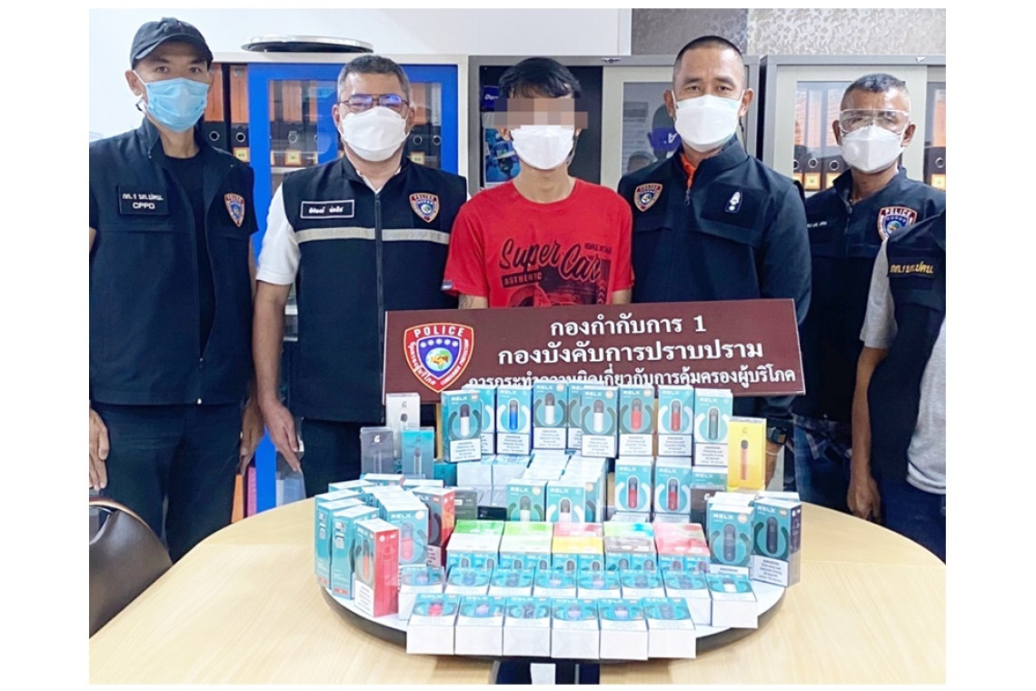 ตามเวลาและสถานที่นัดหมายมีนายจัตุรงค์ จันทร์พวง อายุ 26 ปี มาพร้อมของกลางผลิตภัณฑ์บุหรี่ไฟฟ้า และน้ำยาบุหรี่ไฟฟ้า รวม 4 รายการ มูลค่าประมาณ 100,000 บาท เจ้าหน้าที่ตำรวจชป.5 ที่รออยู่แสดงตัวเข้าควบคุมตัวตรวจค้นและยึดไว้เป็นของกลาง ก่อนแจ้งว่าการขายสินค้าดังกล่าว เป็นการฝ่าฝืนคำสั่งคณะกรรมการคุ้มครองผู้บริโภค ที่ 9/2558 เรื่อง ห้ามขายหรือห้ามให้บริการสินค้าบารากู่ บารากู่ไฟฟ้า บุหรี่ไฟฟ้า หรือน้ำยาสำหรับเติมบุหรี่ไฟฟ้า ผู้ใดขายเป็นความผิดตามพระราชบัญญัติคุ้มครองผู้บริโภค (ฉบับที่ 4) พ.ศ. 2562 ต้องระวางโทษจำคุกไม่เกิน 3 ปี หรือ ปรับไม่เกิน 600,000 บาท หรือทั้งจำทั้งปรับ นำตัวผู้ต้องหาพร้อมของกลาง ส่ง พงส.กก.1 บก.ปคบ. เพื่อดำเนินการตามกฎหมายต่อไป