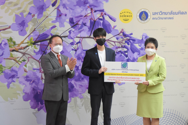 กลอยตา ณ ถลาง ผู้ช่วยกรรมการผู้จัดการใหญ่ สายงานบริหารความยั่งยืนและสื่อสารองค์กร บริษัท บางจาก คอร์ปอเรชั่น จำกัด (มหาชน) ร่วมมอบรางวัล Mahidol Science Communicator Award 2021 ในงานวันคล้ายวันสถาปนาครบรอบ 63 ปี ของการก่อตั้งคณะฯ ณ วิทยาเขตพญาไท รวม 4 รางวัล ประกอบด้วย รางวัลนักสื่อสารวิทยาศาสตร์ดาวรุ่ง ประจำปี 2564 (2021 Rising Star Science Communicator Award) แก่ผู้จัดทำเพจเฟซบุ๊ก "นี่แหละชีวะ" และ "คณิตศาสตร์อย่างที่ควรจะเป็น" และ รางวัลนักสื่อสารวิทยาศาสตร์ ประจำปี 2564 (2021 Science Communicator Award) แก่ รศ. ดร.เจษฎา เด่นดวงบริพันธ์ และ ดร.แทนไท ประเสริฐกุล ซึ่งบางจากฯให้การสนับสนุนรางวัลดังกล่าวตั้งแต่ปี 2563 เป็นต้นมา ในฐานะที่เป็นองค์กรที่ให้ความสำคัญด้านการส่งเสริมและขับเคลื่อนนวัตกรรม เพื่อเป็นการยกย่องเชิดชูเกียรติและสนับสนุนแก่องค์กร บุคคลทั่วไปที่มุ่งมั่นในการนำเรื่องราวเกี่ยวกับวิทยาศาสตร์และศาสตร์ที่เกี่ยวข้อง ซึ่งอาจเป็นเรื่องยากหรือเรื่องไกลตัวสำหรับบางคน มาสื่อสารให้เข้าใจง่าย เป็นเรื่องใกล้ตัว น่าสนใจ