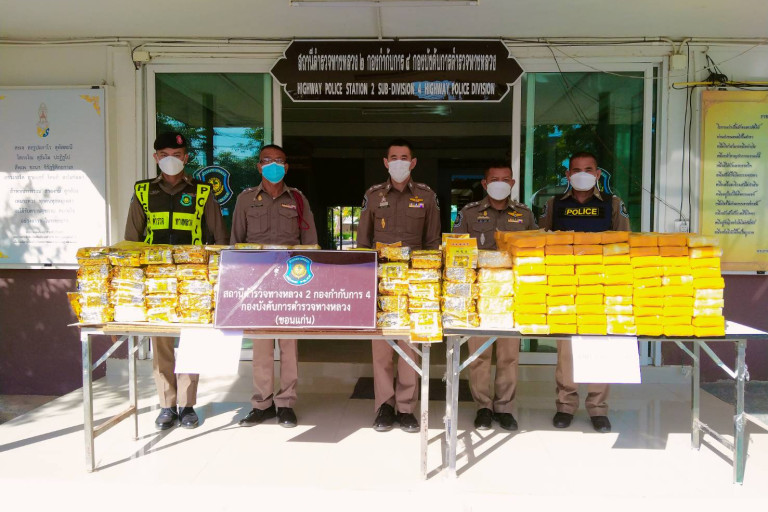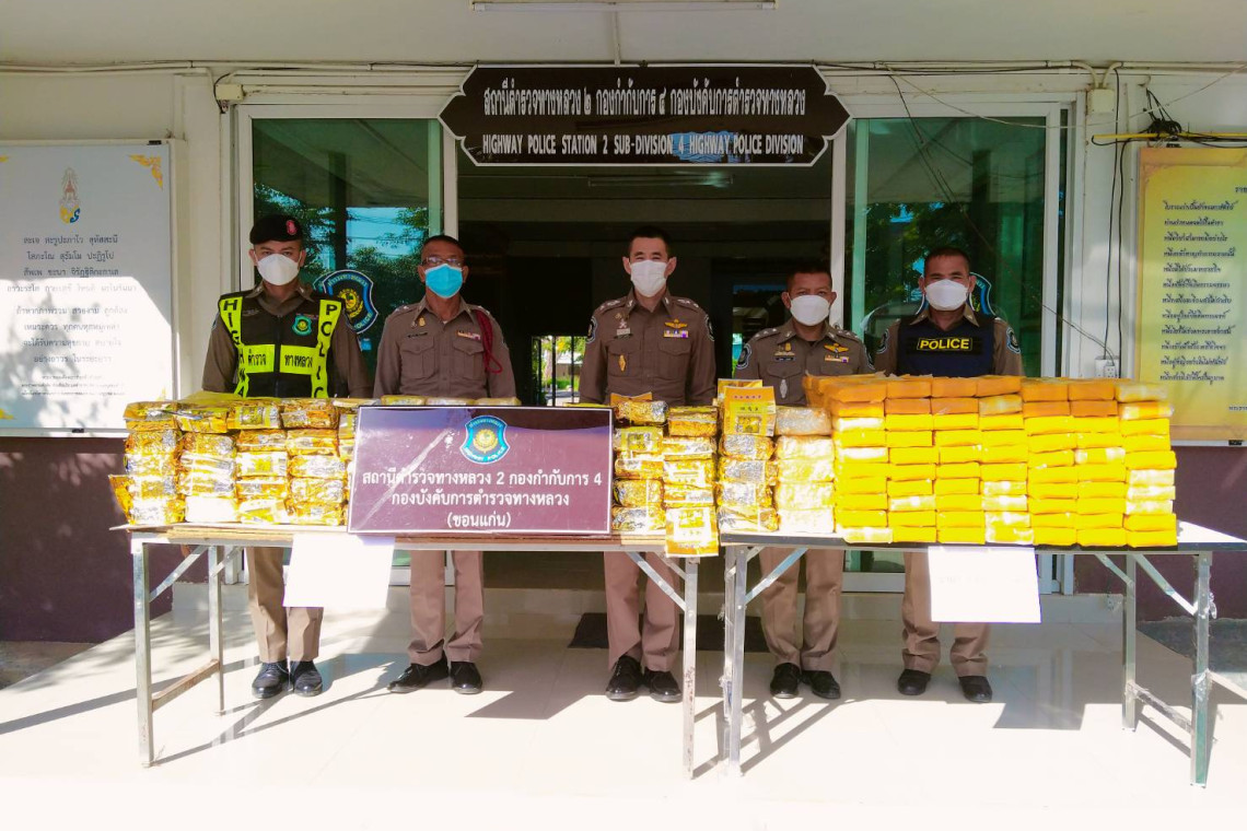 วันที่ 3 พ.ย.ที่ กองบังคับการตำรวจทางหลวง พล.ต.ต.เอกราช ลิ้มสังกาศผบก.ทล.,พ.ต.อ.พฤทธิพงศ์ นุชนารถ รอง ผบก.ทล., พ.ต.อ.จตุพล เร่งถนอมทรัพย์ รอง ผบก.ทล.,พ.ต.อ.อนุรักษ์ ฉิมทิม ผกก.4 บก.ทล.,พ.ต.ท.ภวัต ฉัตรอินแก้ว รอง ผกก.4 บก.ทล., พ.ต.ท.ศษณรรฐ รัตนเศวตวงศ์ รอง ผกก.4 บก.ทล. , พ.ต.ท.บดินทร์ ชูเฉลิม สว.ส.ทล.2 กก.4 บก.ทล., ร.ต.อ.พัลลภ สารคำ รอง สว.ส.ทล.2 กก.4 บก.ทล., ร.ต.ต.มานัตร์ เจริญ รอง สว.(ป.) ส.ทล.2 กก.4 บก.ทล., ด.ต.จิระ พลสง ผบ.หมู่ ส.ทล.2 กก.4 บก.ทล., ด.ต.ธีรวุฒิ พระคุณ ผบ.หมู่ ส.ทล.2 กก.4 บก.ทล., ส.ต.อ.ภูมิ คูเมือง ผบ.หมู่ ส.ทล.2 กก.3 บก.ทล. ยึดของกลาง ยาเสพติดให้โทษประเภท 1 (ยาบ้า) มีอักษร Y1 ปรากฏบนห่อ จำนวน 333 ห่อ ห่อละ 6,000 เม็ด และยาเสพติดให้โทษประเภท 1 (ยาบ้า) จำนวน 1 มัด มัดละ 2,000 เม็ด รวม 2,000,000 เม็ด ,ยาเสพติดให้โทษประเภท 1 (ยาไอซ์) จำนวน 200 ห่อ ห่อละ 1 กก. รวม 200 กก.,รถยนต์กระบะตู้ทึบ ยี่ห้อ มิตซูบิชิ สีขาว ทะเบียน ผว 8850 ชลบุรี,โทรศัพท์มือถือ 2 เครื่อง โดยจับกุมได้ที่บนถนนทางหลวงหมมายเลขข 2 กม.358-359 ถนนมิตรภาพ ต.โนนท่อน อ.เมือง จ.ขอนแก่น