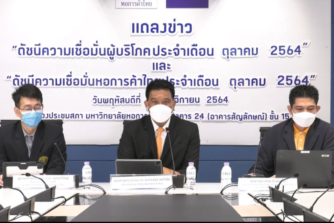 นายธนวรรธน์ พลวิชัย อธิการบดีมหาวิทยาลัยหอการค้าไทย และประธานที่ปรึกษาศูนย์พยากรณ์เศรษฐกิจและธุรกิจ เปิดเผยผลสำรวจดัชนีความเชื่อมั่นของผู้บริโภคประจำเดือนตุลาคม 2564 จากผลของการสำรวจความเชื่อมั่นของผู้บริโภคในเดือนตุลาคม 2564 ดัชนีความเชื่อมั่นของผู้บริโภคปรับตัวดีขึ้นทุกรายการ ซึ่งเป็นการปรับตัวดีขึ้นเต่อเนื่องเป็นเดือนที่ 2 และอยู่ในระดับสูงสุดในรอบ 5 เดือนนับตั้งแต่เดือนมิถุนายน 2564 เป็นต้นมา เนื่องจาก ศบค.ผ่อนคลายมาตรการล็อกดาวน์ในพื้นที่ควบคุมสูงสุด 29 จังหวัดเพิ่มเติมรวมถึงการลดเวลาเคอร์ฟิวลงในเดือนตุลาคมนี้ และการประกาศเปิดประเทศให้นักท่องเที่ยวต่างชาติเข้มมาในประเทศได้รวมถึงการเลิกเคอร์ฟิวในเดือนพฤศจิกายน