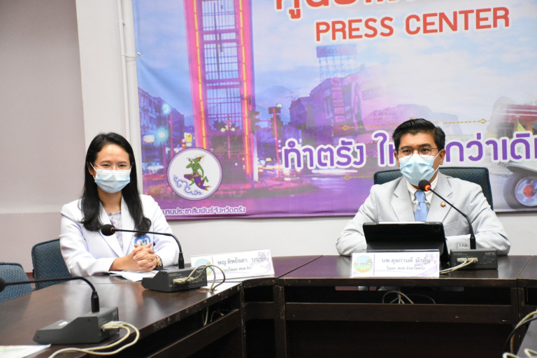วันนี้ ( 4 พ.ย.64) ที่ศูนย์แถลงข่าว ศูนย์บริหารสถานการณ์การแพร่ระบาดของโรคติดเชื้อไวรัสโคโรนา 2019 จังหวัดตรัง ห้องลิบง ชั้น 2 ศาลากลางจังหวัดตรัง นายแพทย์ ตุลกานต์ มักคุ้น นายแพทย์ชำนาญการพิเศษ โรงพยาบาลตรัง ในฐานะโฆษกศูนย์บริหารสถานการณ์การแพร่ระบาดของโรคติดเชื้อไวรัสโคโรนา 2019 จังหวัดตรัง และแพทย์หญิงทิพย์ลดา บุญชัย นายแพทย์ชำนาญการ โรงพยาบาลตรัง ในฐานะรองโฆษกศูนย์บริหารสถานการณ์การแพร่ระบาดของโรคติดเชื้อไวรัสโคโรนา 2019 จังหวัดตรัง แถลงสถานการณ์การแพร่ระบาดของโรคติดเชื้อไวรัสโคโรนา 2019 พบผู้ป่วยโควิด 19 รายใหม่ 189 ราย แบ่งเป็นติดเชื้อในจังหวัดตรัง 185 ราย ติดเชื้อจากที่อื่น 4 ราย รวมผู้ติดเชื้อตามการระบาดระลอกใหม่ตั้งแต่วันที่ 1 เมษายน 2564 จำนวน 12,029 ราย จำแนกผู้ป่วยเป็นรายอำเภอดังนี้ อำเภอกันตัง 39 ราย อำเภอนาโยง 9 ราย อำเภอปะเหลียน 15 ราย อำเภอเมืองตรัง 23 ราย อำเภอย่านตาขาว 46 ราย อำเภอวังวิเศษ 17 ราย อำเภอรัษฎา 2 ราย อำเภอสิเกา 12 ราย อำเภอห้วยยอด 19 ราย และอำเภอหาดสำราญ 3 ราย