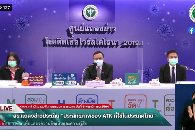 9 พ.ย.2564 ที่กระทรวงสาธารณสุข นพ.ศุภกิจ ศิริลักษณ์ อธิบดีกรมวิทยาศาสตร์การแพทย์ แถลงข่าวประเด็น ประสิทธิภาพของ ATK ที่ใช้ในประเทศไทยว่า วัตถุประสงค์ในการใช้ชุดตรวจ ATK คือผู้ที่มีความเสี่ยง ทั้งที่มีอาการหรือไม่มีอากา รหลังจากสัมผัสโรค 3-5 วันหรือตามความจำเป็น รวมถึงผู้ที่มีอาการต้องสงสัยติดเชื้อทางเดินหายใจ มีอาการไข้หรือวัดอุณหภูมิได้ตั้งแต่ 37.5 องศาเซลเซียสขึ้นไป ไอ มีน้ำมูก เจ็บคอ ไม่ได้กลิ่น ลิ้นไม่รับรส หายใจเร็ว หายใจเหนื่อยหรือหายใจลำบาก ตาแดง ผื่น ถ่ายเหลว