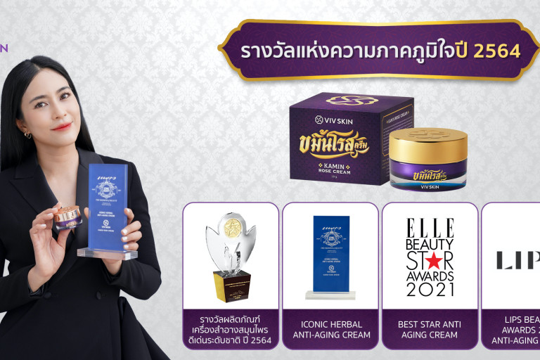 วิฟสกิน ผลิตภัณฑ์บำรุงผิวพรรณจากสารสกัดสมุนไพร โดยนักแสดงสาวชื่อดัง จุ๋ย วรัทยา นิลคูหา ตอกย้ำความสำเร็จด้วยการคว้ารางวัลผลิตภัณฑ์เครื่องสำอางสมุนไพรดีเด่นระดับชาติ จากกรมการแพทย์แผนไทยและการแพทย์ทางเลือก กระทรวงสาธารณสุข ถึง 2 ปีซ้อน โดยปี 2563 ที่ผ่านมา ได้รับรางวัลจากผลิตภัณฑ์วิฟสกิน “ขมิ้นโกลด์เซรั่ม” และล่าสุด ในปี 2564 นี้ คว้ารางวัลมาครองได้สำเร็จอีกครั้งจากผลิตภัณฑ์วิฟสกิน “ขมิ้นโรสครีม”