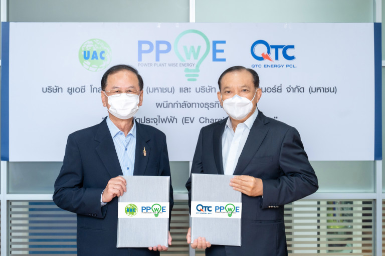 บมจ.ยูเอซี โกลบอล (UAC) และบมจ. คิวทีซี เอนเนอร์ยี่ (QTC) ผนึกพันธมิตรทางธุรกิจประกาศ ลุยลงทุนโปรเจกต์สถานีอัดประจุไฟฟ้า (EV Charging Station) ผ่านบริษัทร่วมทุน “พีพีดับบลิวอี” (PPWE) อัดงบลงทุน 15 ล้านบาท จ่อประเดิมปี 65 นำร่องเฟสแรก 4 สถานี พร้อมวางเป้าติดตั้งให้ครบ 50 สถานี มั่นใจจะช่วยผลักดันสร้างมูลค่าเพิ่มอย่างมั่นคงให้ทั้ง 2 บริษัทเติบโตอย่างมีนัยสำคัญ สืบเนื่องจากมติคณะกรรมการนโยบายยานยนต์ไฟฟ้าแห่งชาติ (24 มี.ค.64) ซึ่งมุ่งไปที่การเพิ่มสัดส่วนการผลิตและจำหน่ายรถยนต์ไฟฟ้าให้เป็น 30% ภายในปี 2573 วางเป้าหมายในปี 2568 ที่จะให้ประเทศไทยมีการใช้ยานรถยนต์ไฟฟ้ารวมทุกประเภทจำนวนทั้งสิ้น 1,055,000 คัน แบ่งออกเป็น รถยนต์และรถกระบะ 402,000 คัน และในปี 2578 ให้เพิ่มขึ้นเป็นจำนวน 18.41 ล้านคัน แบ่งออกเป็นรถยนต์และรถกระบะ 8,625,000 คัน ด้านนายชัชพล ประสพโชค ประธานเจ้าหน้าที่บริหารและกรรมการผู้จัดการ บริษัท ยูเอซี โกลบอล จำกัด (มหาชน) หรือ UAC เปิดเผยว่ามองเห็นถึงศักยภาพการต่อยอดทางธุรกิจในด้าน EV Station ที่สอดคล้องกับนโยบายการลงทุนด้าน Energy Efficiency และ Zero-Emissionเพื่อสร้างมูลค่าเพิ่มให้บริษัทฯ อย่างมั่นคงและยั่งยืนในระยะยาว และการสร้าง Synergy ร่วมกับบริษัทพันธมิตร เพื่อให้เกิด New S-Curve ของ UAC Group ในอนาคตอันใกล้นี้ โโยจากประเด็นดังกล่าว คณะกรรมการบริษัทฯได้มีมติอนุมัติเข้าลงทุนสถานีอัดประจุไฟฟ้า หรือ EV Charging Station โดยเป็นการลงทุนร่วมกับ บริษัท คิวทีซี เอนเนอร์ยี่ จำกัด (มหาชน) หรือ QTC ซึ่งเป็นผู้ผลิตจัดจำหน่ายและให้บริการหม้อแปลงไฟฟ้า เพื่อร่วมพัฒนาและลงทุนติดตั้งสถานีอัดประจุไฟฟ้า ภายใต้บริษัทร่วมทุน “พีพีดับบลิวอี” (PPWE) โดยบริษัท ยูเอซี เอ็นเนอร์ยี่ จำกัด ในเครือ UAC Group และ QTC Energy ถือหุ้นอยู่ในสัดส่วนบริษัทละ 49.98% ล่าสุดคณะกรรมการทั้ง 2 บริษัท ได้มีมติเพิ่มทุนจดทะเบียนในบริษัท PPWE เป็น 40 ล้านบาท เพื่อรองรับการให้บริการสถานีอัดประจุไฟฟ้า (EV charging station) ในรูปแบบชาร์จไฟแบบเร็วด้วยไฟฟ้ากระแสตรง (DC EV Quick Charger) ที่มีขนาดสูงสุดถึง 200 kW โดยในเฟสแรกจะติดตั้งเครื่องชาร์จของบริษัท คอสเทล จำกัด (COSTEL) ซึ่งเป็นผู้ผลิตเครื่องชาร์จไฟฟ้าชั้นนำจากประเทศเกาหลีใต้ ที่มีประสบการณ์ในการพัฒนาและติดตั้งสถานีอัดประจุไฟฟ้ามาตั้งแต่ปี 2559 และจะเน้นติดตั้งสถานีในพื้นที่ที่สามารถตอบโจทย์การใช้งานและตรงกับความต้องการของผู้ใช้ให้ได้มากที่สุด นายพูลพิพัฒน์ ตันธนสิน ประธานเจ้าหน้าที่บริหาร บริษัท คิวทีซี เอนเนอร์ยี่ จำกัด (มหาชน) หรือ QTC เปิดเผยในฐานะผู้ผลิตจัดจำหน่าย และให้บริการหม้อแปลงไฟฟ้าว่า สำหรับการลงทุน ในโปรเจกต์การติดตั้งส