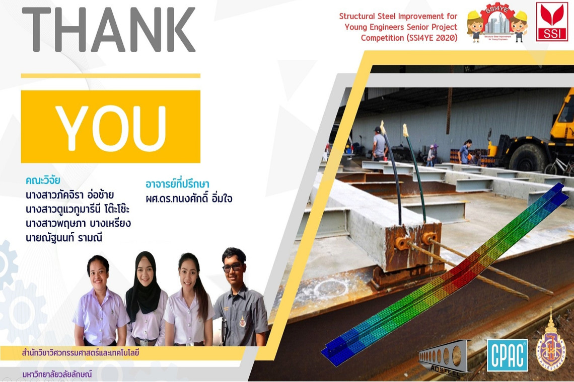 นักศึกษาหลักสูตรวิศวกรรมโยธา มวล. คว้ารางวัล Best of the best สุดยอดปริญญานิพนธ์เหล็ก SSI 4YE 2020 พร้อมเงิน 5 หมื่นบาท และโล่รางวัล มหาวิทยาลัยวลัยลักษณ์ (มวล.) แจ้งว่า นักศึกษาชั้นปีที่ 4 หลักสูตรวิศวกรรมโยธา สำนักวิชาวิศวกรรมศาสตร์และเทคโนโลยี ประกอบด้วย นางสาวพฤษภา บางเหรียง , นางสาวตูแวกูมารีนี โต๊ะโซ๊ะ , นางสาวภัคจิรา อ่อซ้าย และนายณัฐนนท์ รามณี เจ้าของผลงานเรื่อง ประสิทธิภาพของการอัดแรงคานคอมโพสิทจากเหล็กประกอบ และคอนกรีตเก่าสำหรับระบบพื้นชนิดบาง ภายใต้ชื่อทีม FSB WU โดยมีอาจารย์ ผศ.ดร. ทนงศักดิ์ อิ่มใจ เป็นที่ปรึกษา คว้ารางวัลชนะเลิศการประกวดสุดยอดปริญญานิพนธ์เหล็ก SSI 4YE 2020 ได้รับทุนสนับสนุนจำนวน 50,000 บาท และโล่รางวัล ซึ่งจัดขึ้นภายใต้โครงการ Structural Steel Improvement (SSI) for Young Engineers (SSI 4YE) ประจำปี 2564 โดยบริษัท สหวิริยา อินดัสตรี จำกัด (มหาชน) เมื่อเร็วๆ นี้ นางสาวภัคจิรา อ่อซ้าย หัวหน้าทีม FSB WU กล่าวว่า งานปริญญานิพนธ์ที่ได้รับรางวัลในครั้งนี้ เป็นการทดสอบเกี่ยวกับประสิทธิภาพของการอัดแรงคานคอมโพสิตจากเหล็กประกอบและคอนกรีตผสมเศษคอนกรีตเก่าสำหรับระบบพื้นชนิดบาง เป็นการประยุกต์ใช้ระบบเหล็กเสริมอัดแรงเข้ามาช่วยเพื่อลดปัญหาการแอ่นตัวของคาน ที่มีช่วงยาวลดปัญหาของการสั่นในภาวะใช้งานและเพิ่มความสามารถในการรับแรงดัดสามารถนำไปใช้ประโยชน์ในการก่อสร้างอาคาร โรงจอดรถของโรงพยาบาล ห้างสรรพสินค้า ออฟฟิศ สำนักงาน และอื่นๆ การแข่งขันในครั้งนี้ทำให้ได้ประสบการณ์ที่หลากหลาย ทั้งการนำเสนอต่อคณะกรรมการผู้ทรงคุณวุฒิ การแสดงผลงานได้เป็นที่ประจักษ์และทำให้ผู้คนรู้จัก ม.วลัยลักษณ์ มากขึ้น และได้นำความรู้จากห้องเรียน เช่น การจำลองโมเดลด้วยไฟไนท์อิลิเมนต์ มาใช้ทำนายพฤติกรรมการเสียรูปของคาน ที่เราทำการทดสอบได้สามารถทำให้เรารู้ว่าคานของเรารับน้ำหนักได้มากน้อยเพียงใด “รู้สึกดีใจและภูมิใจมากที่ได้รับรางวัลยอดเยี่ยมในครั้งนี้ และขอขอบคุณอาจารย์ ผศ.ดร.ทนงศักดิ์ อิ่มใจอาจารย์ที่ปรึกษาปริญญานิพนธ์ ที่ให้คำปรึกษาแนะนำและสนับสนุนจนทำให้โครงการนี้เป็นที่ยอมรับ ขอบคุณหลักสูตรวิศวกรรมโยธา สำนักวิชาวิศวกรรมศาสตร์และเทคโนโลยี ที่ให้การสนับสนุนการทำโปรเจคในครั้งนี้ ขอบคุณทีมนักวิจัย และบริษัทเอกชนที่ให้ความร่วมมือในการส่งเข้าประกวดในครั้งนี้และที่ขาดไม่ได้เลยคือขอบคุณโครงการ SSI for Young Engineers 2020 ที่เปิดโอกาสให้นักศึกษาเข้าร่วมแข่งขันในครั้งนี้” นางสาวภัคจิรา กล่าว สำหรับโครงการ Structural Steel Improvement for Young Engineers มีวัตถุประสงค์เพื่อสร้างเสริมนิสิตนักศึกษา ให