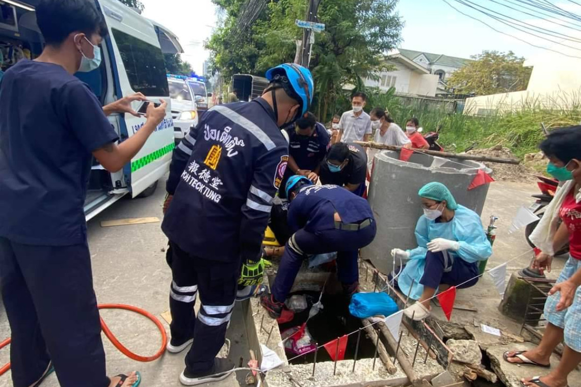 เมื่อเวลา 07.30 น. วันที่ 20 พ.ย.64 เจ้าหน้าที่มูลนิธิป่อเต็กตึ๊ง ได้รับแจ้งหญิงชราขี่จักรยานปั่น เสียหลัก ล้ม เหล็กเสียบติดขาบริเวณท่อระบายน้ำ ที่กำลังก่อสร้าง ภายในซอยรัตนาธิเบศร์ 22 แยก 15 ตำบลบางกระสอ อำเภอเมือง จังหวัดนนทบุรีพร้อมด้วยเจ้าหน้าที่และอุปกรณ์ตัดถ่าง เข้าช่วยเหลือ ที่เกิดเหตุบริเวณข้างถนนอยู่ระหว่างกำลังก่อสร้างเจ้าหน้าที่ได้มีการฝังท่อเพื่อระบายน้ำตลอดแนว ปากท่อกว้างประมาณหนึ่งเมตรคูณหนึ่งเมตรภายในท่อมีน้ำท่วมขังบริเวณปากท่อมีเหล็กเส้นแหลมยาวประมาณ30-50เซ็นติเมตรกว่า30 เส้นเรียงอยู่บริเวณปากท่อ พบนางจุฑาทิพย์ พลอยรัตน์ อายุ 66 ปี นอนคว่ำหน้าร้องโอดโอยด้วยความเจ็บปวดอยู่บนจักยานปั่นที่ล้มพาดอยู่บนปากท่อบริเวณหน้าแข้งซ้ายถูกเหล็กเส้นที่ปากท่อระบายน้ำเสียบติดอยู่เจ้าหน้าที่กู้ได้ช่วยกันปฐมพยาบาลเบื้องต้นนำเครื่องตัดถ่างเข้าตัดรถจักยานที่ขวางอยู่บริเวณปากท่อและนำเครื่องตัดถ่างตัดเหล็กเส้นที่เสียบติดหน้าแข้งซ้ายให้ขาดออกใช้เวลาประมาณ20 นาที แต่เหล็กแทงทะลุหน้าแข้งเข้าไปลึกไม่สามารถดึงออกมาได้จึงได้นำตัวนางจุฑาทิพย์ พลอยรัตน์ อายุ 66 ปี พร้อมด้วยเหล็กเส้นที่เสียบติดคาอยู่รีบนำตัวส่งโรงพยาบาลพระนั่งเกล้าเพื่อช่วยเหลือต่อไป จากการสอบสวนทราบว่านางจุฑาทิพย์ได้ปั่นจักรยานอยู่ริมถนนกลับจากซื้อของพอมาถึงที่เกิดเหตุล้อหน้าของรถได้ตกขอบถนนเนื่องจากถนนกำลังก่อสร้างพื้นถนนกับบริเวณทางสูงต่ำไม่เท่ากันทำให้รถจักรยานปั่นเสียหลักพุงเข้าไปที่บริเวณท่อระบายน้ำทำให้หน้าคว่ำเหล็กเสียบติดเข้าที่หน้าแข้งและมีรอยแผลบริเวณร่างกายอีกหลายแห่ง