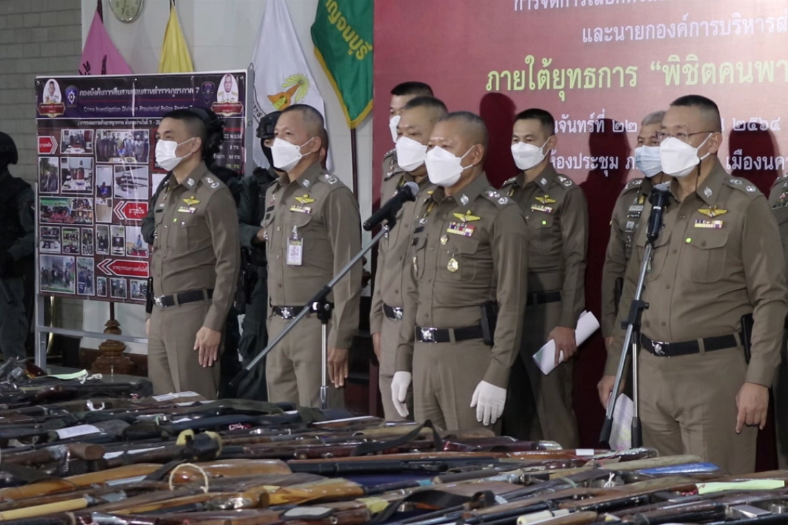 ตำรวจภูธรภาค 7 แถลงผลการระดมกวาดล้างอาชญากรรมในการเตรียมความพร้อมการรักษาความปลอดภัยและความสงบเรียบร้อยการจัดการเลือกตั้งสมาชิกสภาองค์การบริหารส่วนตำบลและนายกองค์การบริหารส่วนตำบล ระหว่างวันที่ 11 – 20 พฤศจิกายน โดยได้ผู้ต้องหา 3 พันกว่า ของกลางอาวุธปืน ยาเสพติดและสิ่งผิดกฏหมายอีกเพียบ วันนี้ 22 พ.ย. 64 ที่ห้องประชุมตำรวจภูธรภาค 7 ชั้น 2 ตำบลพระปฐมเจดีย์ อำเภอเมืองนครปฐม จังหวัดนครปฐม พลตำรวจเอกสุวัฒน์ แจ้งยอดสุข ผู้บัญชาการตำรวจแห่งชาติ พลตำรวจเอกดำรงศักดิ์ กิตติประภัสร์ รองุ้ยัญชาการตำรวจแห่งชาติ พลตำรวจเอกสุชาติ ธีระสวัสดิ์ รองผู้บัญชาการตำรวจแห่งชาติ พลตำรวจเอกรอย อิงคไพโรจน์ รองผู้บัญชาการตำรวจแห่งชาติ พร้อมด้วย พลตำรวจโทธนายุตม์ วุฒิจรัสธำรงค์ ผู้บัญชาการตำรวจภูธรภาค 7 พลตำรวจตรีนัยวัฒน์ ผะเดิมชิต รองผู้บัญชาการตำรวจภูธรภาค 7 พลตำรวจตรีพิสิฐ ตันประเสริฐ รองผู้บัญชาการตำรวจภูธรภาค 7 พลตำรวจตรีอาทิชา เปาอินทร์ รอง รองผู้บัญชาการตำรวจภูธรภาค 7 พลตำรวจตรีวัฒนา ยี่จีน รองผู้บัญชาการตำรวจภูธรภาค 7 พลตำรวจตรีบุญญฤทธิ์ รอดมา รองผู้บัญชาการตำรวจภูธรภาค 7 พลตำรวจตรีรักษ์จิต หม้อมงคล รองผู้บัญชาการตำรวจภูธรภาค 7 และ พลตำรวจตรีปรัชญา ประสานสุข รองผู้บัญชาการตำรวจภูธรภาค 7 ร่วมแถลงผลปฏิบัติการระดมกวาดล้างอาชญากรรมก่อนการเลือกตั้งสมาชิกสภาองค์การบริหารส่วนตำบลและนายกองค์การบริหารส่วนตำบล ซึ่งจากการระดมกวาดล้าง สามารถจับกุมผู้กระทำความผิดได้ ดังนี้ 1. อาชญากรรมทั่วไป (On Ground) จับกุม 2,807 ราย 2,874 คน 2.อาชญากรรมทางเทคโนโลยี (On Line) จับกุม 65 ราย 65 คน 3. การจับกุมผู้ต้องหาตามหมายจับ จับกุม 511 ราย 511 คน 4.สรุปผลการจับกุมทั้งสิ้น 3,383 ราย 3,450 คน 5.การจับกุมในความผิดเกี่ยวกับอาวุธปืน เพื่อเป็นการป้องกันเหตุที่อาจจะเกิดขึ้นก่อนการเลือกตั้ง อบต. สามารถทำการยึดของกลางอาวุธปืนธรรมดา (ไม่มีทะเบียน) จำนวน 791 กระบอก /อาวุธปืนธรรมดา (มีทะเบียน) จำนวน 125 กระบอก /อาวุธปืนสงครามจำนวน 3 กระบอก /เครื่องกระสุนปืน จำนวน 6,383 นัด และสามารถจับกุมและตรวจยึดของกลางยาเสพติดได้ดังนี้คือ ยาบ้า 94,584 เม็ด, ยาไอซ์ 751.93 กรัม, กัญชา 5,346.45 กรัม/ต้นกัญชา 94 ต้น, เคตามีน 99.61 กรัม และ เฮโรอีน 218.63 กรัม