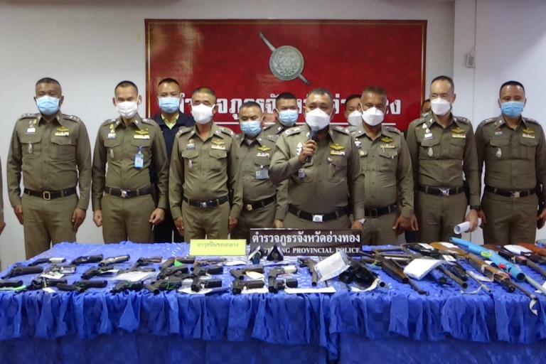 วันที่ 23 พ.ย.64 เวลา 09.00 น. ที่กองบังคับการตำรวจภูธรจังหวัดอ่างทอง พล.ต.ต.วิชิต บุญชินวุฒิกุล ผู้บังคับการตำรวจภูธรจังหวัดอ่างทอง แถลงผลการกวาดล้างอาชญกรรมที่สร้างความเดือดร้อนให้แก่ประชาชนและเป็นภัยกับสังคมระหว่างวันที่ 20-31 ตุลาคม 2564 และระดมกวาดล้างอาชญกรรมเตรียมความพร้อมการรักษาความปลอดภัยและความสงบเรียบร้อยการจัดการเลือกตั้งสมาชิกสภาองค์การบริหารส่วนตำบล และนายกองค์การบริหารส่วนตำบลระหว่างวันที่12-20 พฤศจิกายน 2564 ตามที่ตำรวจภูธรภาค 1 ได้กำหนดให้ตำรวจภูธรจังหวัดทุกแห่งระดมกวาดล้างอาชญากรรมที่สร้างความเดือดร้อนให้แก่ประชาชนเป็นภัยกับสังคม และ รักษาความปลอดภัยความสงบเรียบร้อย ก่อนการเลือกตั้งนายก และสมาชิกสภาองค์การบริหารส่วนตำบลในพื้นที่รับผิดชอบในห้วงระยะเวลา 20-31 ตุลาคม 2564 และ 11-20 พฤศจิกายน 2564 ซึ่งทางตำรวจภูธรจังหวัดอ่างทอง ได้ดำเนินการระดมกวาดล้างอาชญากรรม โดยระดมสรรพกำลังทุกภาคส่วนหน่วยงานต่างๆ ในจังหวัดอ่างทอง เพื่อให้เกิดประสิทธิภาพสูงสุด ในการระดมกวาดล้างอาชญากรรม โดยมีเป้าหมายสำคัญในการระดมกวาดล้างอาชญากรรม เพื่อป้องกันปราบปรามอาชญากรรม,ยาเสพติดและอาวุธปืน อาวุธปืนสงครามและเร่งรัดคดีอุกฉกรรจ์สะเทือนขวัญ ในช่วงก่อนถึงวันเลือกตั้งนายก อบต.และสมาชิก อบต.ที่จะมีขึ้นในวันที่ 28 พ.ย.นี้