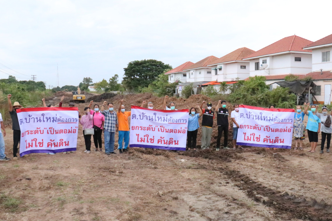 เมื่อเวลา 10.30 น. วันที่ 24 พฤศจิกายน ที่ช่วงหลักเสาโทรเลขรถไฟที่ 224+175 จุดตัดถนนทางข้ามรถไฟที่ 4 บริเวณหน้าหมู่บ้านกรุงไทย 2 ต.บ้านใหม่ อ.เมือง จ.นครราชสีมา พื้นที่ก่อสร้างโครงการรถไฟความเร็วสูง (ไฮสปีดเทรน) ตามความร่วมมือระหว่างรัฐบาลไทย-จีน เพื่อเชื่อมโยงภูมิภาค ระยะที่ 1 กรุงเทพมหานคร-นครราชสีมา งานสัญญาที่ 3-5 งานโยธาสำหรับช่วงโคกกรวดถึงนครราชสีมา โดยบริษัท กิจการร่วมค้า เอสพีทีเค จำกัด ผู้รับจ้าง ระยะทางรวม 12.36 กิโลเมตร นายประพจน์ ธรรมประทีป สมาชิกสภาองค์การบริหารส่วนจังหวัด (ส.อบจ.) นครราชสีมา อ.เมือง เขต 4 พร้อมนายอนันต์ ละอองแก้วสุข ประธานกลุ่มพัฒนาชุมชนบ้านใหม่ 2020 นายพัชกฤต ศุภลักษณ์ ประธานหมู่บ้านกรุงไทย 2 และชาวบ้านกว่า 20 คน ได้นัดรวมตัวยืนถือป้ายระบุข้อความ “ต.บ้านใหม่ต้องการยกระดับเป็นตอม่อไม่ใช่คันดิน” ซึ่งเป็นการเรียกร้องให้ผู้มีส่วนเกี่ยวข้องปรับรูปแบบการก่อสร้างทางรถไฟความเร็วสูงที่อาจส่งผลกระทบต่อวิถีชีวิตในอนาคต นายอนันต์ ประธานกลุ่มพัฒนาชุมชนบ้านใหม่ 2020 เปิดเผยว่า กายภาพของ ต.บ้านใหม่ เป็นชุมชนชานเมืองขนาดใหญ่มี 12 หมู่บ้าน ประชากรกว่า 3 หมื่นคน โครงการบ้านจัดสรรจำนวน 15 แห่ง สถานศึกษา 9 แห่ง และที่ตั้งหน่วยงานราชการ รูปแบบเดิมช่วงเส้นทางผ่าน ต.บ้านใหม่ เป็นคันทางระดับดิน 7.85 กม. ก่อนจะยกระดับเข้าสู่สถานีรถไฟนครราชสีมา ซึ่งคันดินสูงประมาณ 2 เมตร เปรียบเสมือนกำแพงกั้นไม่ตอบโจทย์ความสะดวก ความปลอดภัย เสมือนการแบ่งแยกชาวบ้านที่อยู่สองข้างทางรถไฟออกจากกันส่งผลต่อการพัฒนาอย่างยั่งยืน ทำให้การสัญจรยากลำบากรวมทั้งหากเกิดเหตุเพลิงไหม้รถดับเพลิงต้องเสียเวลาระงับเหตุร้าย ขอให้ผู้มีอำนาจช่วยพิจารณาปัญหาความเดือดร้อนของพวกเราด้วย ทั้งนี้พื้นที่พิพาทเป็นส่วนหนึ่งของโครงการความร่วมมือระหว่างรัฐบาลแห่งราชอาณาจักรไทยและจีนในการพัฒนาระบบรถไฟความเร็วสูงเพื่อเชื่อมโยงภูมิภาค ช่วงกรุงเทพมหานคร-หนองคาย ระยะที่ 1 กรุงเทพ-นครราชสีมา งานสัญญาที่ 3-5 งานโยธาสำหรับช่วงโคกกรวดถึงนครราชสีมา มูลค่า 7,750 ล้านบาท ขอบเขตงาน 1.งานโครงสร้างทางรถไฟ ระยะทางรวม 12.52 กม. คันทางระดับดิน 7.85 กม. ทางยกระดับ 4.853 กม. 2.งานสถานีนครราชสีมา 3.งานอาคารและสิ่งปลูกสร้างรองรับงานระบบไฟฟ้า 4.งานรื้อย้ายต่างๆ โดยมีระยะเวลาก่อสร้าง 1,080 วัน เริ่มงานวันที่ 26 มกราคม 2564 สิ้นสุดวันที่ 10 มกราคม 2567