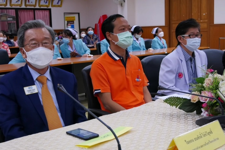 วันที 25 พฤศจิกายน 2564 เวลา 11.00 น.ณ ห้องประชุมกิตติรังสิ ชั้น 5 โรงพยาบาลศรีสะเกษ น.ส.ฐาปณ์ย์ ชุณหไชยพันธ์ ผู้ว่าการภาคไลออนส์สากลภาค 310 อี เป็นประธานมอบเครื่องมือแพทย์มูลค่า 2,158,000 บาทให้แก่โรงพยาบาลศรีสะเกษ โดยมี ไลออนส์ อรทัย จริยานพิวาทย์ นายกสโมสรไลออนส์ศรีสะเกษ ไลออนส์ อัมพร ศิริพานิชกร นายกสโมสรไลออนส์ราชธานี กรุงเทพ นายอนุรัตน์ ธรรมประจำจิต รองผู้ว่าราชการจังหวัดศรีสะเกษ นายแพทย์ นิมิตร เลิศพัฒนสุวรรณ รองผู้อำนวยการโรงพยาบาลศรีสะเกษและคณะแพทย์พยาบาลโรงพยาบาลศรีสะเกษ ร่วมให้การต้อนรับและรับมอบเครื่องมือแพทย์ 7 รายการ มูลค่า 2,158,000 บาท ประกอบด้วย เครื่องติดตามการทำงานของหัวใจและสัญญาณชีพ เครื่องช่วยหายใจชนิดควบคุมปริมาตรและแรงดัน 1 เครื่อง เตียงผู้ป่วยระบบไฟฟ้าพร้อมตู้ข้างเตียง และโต๊ะคร่อมเตียง 2 เตียง เครื่องติดตามการทำงานของหัวใจและสัญญาณชีพวัดค่าคาร์บอนฯ 1 เครื่อง เครื่องติดตามการทำงานของหัวใจและสัญญาณชีพรุ่น SVM 7501 2 เครื่อง เครื่องผลิตออกซิเจนขนาด 10 ลิตร และเครื่องวัดความดันโลหิตแบบพกพาจำนวน 3 เครื่อง ในโอกาสนี้ นายทนงศักดิ์ โล่ห์อัจฉริยะกุล โดยไลออนส์ เมธา โล่อัจฉริยะกุลได้บริจาคเงิน จำนวน 50,000 บาท ให้แก่โรงพยาบาลศรีสะเกษด้วย ทั้งนี้เพื่อให้โรงพยาบาลศรีสะเกษ ได้มีเครื่องมือแพทย์ที่ทันสมัยไว้ช่วยเหลือคนไข้ในจังหวัดศรีสะเกษต่อไป