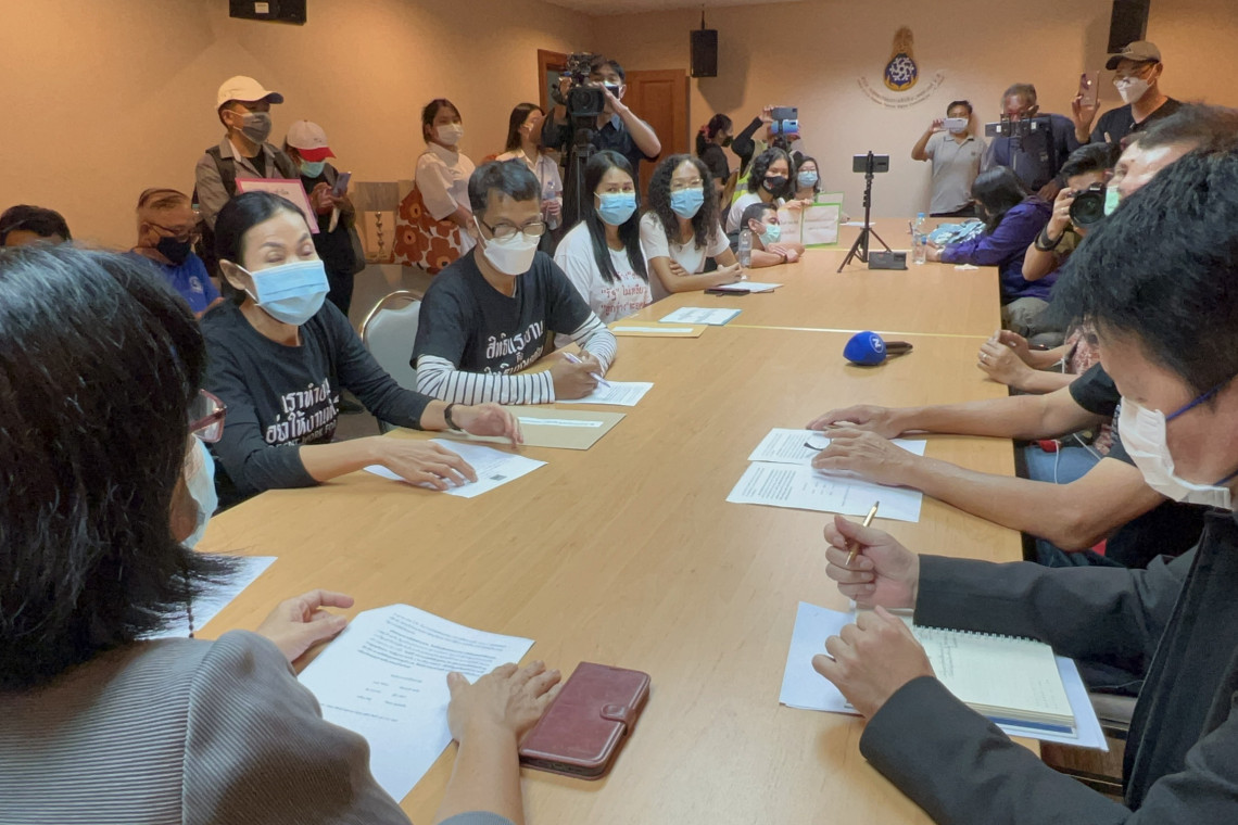 เมื่อเวลา 13.00 น. วันที่ 30 พ.ย.64 ที่สำนักงานคณะกรรมการสิทธิมนุษยชน ชั้น 6 อาคารบี ศูนย์ราชการฯ แจ้งวัฒนะ นางจิตรณวัชรี พะนัด ประธานสหภาพแรงงานไทรอัมพ์อินเตอร์เนชั่นแนลแห่งประเทศไทย พร้อมพวกซึ่งเป็นอดีตพนักงานจากบริษัทผู้ผลิตชุดชั้นในยี่ห้อดัง ส่งออกเอเชีย ยุโรป อเมริกา เดินทางเข้ายื่นหนังสือร้องเรียนต่อคณะกรรมการสิทธิมนุษยชนแห่งชาติ (กสม.) โดยมี น.ส.ศยามล ไกยูรวงศ์ กรรมการสิทธิมนุษยชนแห่งชาติ เป็นผู้รับเรื่อง กรณีแรงงานของโรงงานดังกล่าวถูกดำเนินคดีภายหลังไปร่วมชุมนุมเรียกร้องให้รัฐบาลช่วยจากการที่เจ้าของโรงงานลอยแพลูกจ้างเลิกกิจการ บริเวณหน้าทำเนียบ เมื่อวันที่ 19 ต.ค.