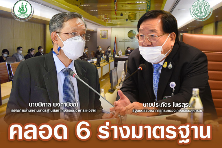 "รมช.ประภัตร" นั่งหัวโต๊ะ คลอด 6 ร่างมาตรฐานสินค้าเกษตร โชว์ผลงาน มกอช. ปี 64 ออกใบอนุญาตผู้ผลิต ผู้ส่งออก ผู้นำเข้า 7 มาตรฐานบังคับ 332 ฉบับ วันที่ 1 ธ.ค.64 นายประภัตร โพธสุธน รัฐมนตรีช่วยว่าการกระทรวงเกษตรและสหกรณ์ เปิดเผยภายหลังการประชุมคณะกรรมการมาตรฐานสินค้าเกษตร ครั้งที่ 5/2564 ผ่านระบบการประชุมทางไกล Zoom Cloud Meeting ณ กระทรวงเกษตรและสหกรณ์ว่า ที่ประชุมได้รับทราบผลการดำเนินงานออกใบอนุญาตเป็นผู้ผลิต ผู้ส่งออก ผู้นำเข้าสินค้าเกษตรตามมาตรฐานบังคับ จำนวนทั้งหมด 7 มาตรฐาน ในปีงบประมาณ 2564 นับตั้งแต่วันที่ 1 ตุลาคม 2563-31 กันยายน 2564 ได้แก่ 1.หลักปฏิบัติสำหรับกระบวนการรมผลไม้สดด้วยก๊าซซัลเฟอร์ไดออกไซต์ (มกษ.1004-2557) 2.หลักปฏิบัติสำหรับการผลิตเชื้อเห็ด (มกษ.2507-2559) 3.เมล็ดถั่วลิสง : ข้อกำหนดปริมาณอะฟลาทอกซิน (มกษ.4702-2557) 4.การปฏิบัติที่ดีสำหรับศูนย์รวบรวมน้ำนมดิบ (มกษ.6401-2557) 5.การปฏิบัติทางการเพาะเลี้ยงสัตว์น้ำที่ดีสำหรับฟาร์มผลิตลูกกุ้งขาวแวนนาไม ปลอดโรค (มกษ.7432-2558) 6.การปฏิบัติที่ดีสำหรับการผลิตทุเรียนแช่เยือกแข็ง (มกษ.9046-2560) และ7.การปฏิบัติทางการเกษตรที่ดีสำหรับฟาร์มไก่ (มกษ.6909-2562) ซึ่งได้ดำเนินการออกเป็นจำนวนทั้งสิ้น 332 ฉบับ โดยแบ่งเป็นใบอนุญาตผู้ผลิต 236 ฉบับ ผู้ส่งออก 88 ฉบับ และผู้นำเข้า 8 ฉบับ นอกจากนี้ ที่ประชุมได้พิจารณาเห็นชอบร่างมาตรฐานสินค้าเกษตร 6 เรื่อง ได้แก่ 1.ลูกเดือย 2.การปฏิบัติทางการเกษตรที่ดีสำหรับฟาร์มเลี้ยงสัตว์เพื่อการบริโภค 3.หลักปฏิบัติสำหรับการเฝ้าระวังและตรวจติดตาม เชื้อดื้อยาต้านจุลชีพในปศุสัตว์ 4.หลักการด้านสวัสดิภาพสัตว์ : ระบบการผลิตสุกร 5.การปฏิบัติทางการเพาะเลี้ยงสัตว์น้ำที่ดีสำหรับฟาร์มเลี้ยงกุ้งทะเล และ 6.การแสดงฉลากสินค้าเกษตร ทั้งนี้ เพื่อดำเนินการประกาศเป็นมาตรฐานทั่วไปของประเทศต่อไป ด้านนายพิศาล พงศาพิชณ์ เลขาธิการ มกอช. กล่าวว่า สำหรับสาระสำคัญของร่างมาตรฐาน 6 เรื่อง คือ 1.ลูกเดือย เป็นพืชเศรษฐกิจที่มีความสำคัญต่อการบริโภค อุตสาหกรรมอาหาร ตลาดต้องการลูกเดือยคุณภาพดี โดยปี 2563 มีการส่งออกลูกเดือยทั้งเปลือกมูลค่า 102.5 ล้านบาท ปริมาณ 2,035 เมตริกตัน ซึ่งการจัดทำร่างมาตรฐานสินค้าเกษตรลูกเดือย เพื่อเป็นประโยชน์ในการกำกับดูแลการนำเข้าลูกเดือยและคุณภาพของลูกเดือยภายในประเทศ 2.การปฏิบัติทางการเกษตรที่ดีสำหรับฟาร์มเลี้ยงสัตว์เพื่อการบริโภค ปัจจุบันเกษตรกรและผู้ประกอบการมีการเลี้ยงสัตว์เพื่อการบริโภคหลากหลายชนิด เพื่อเป็นการเพิ่มทางเลือกให้แก่เกษตรกรและผู้ประกอบการได้เข้าสู่ระบบมาตรฐานฟาร์มปศุสัตว์ โดยมาตรฐาน