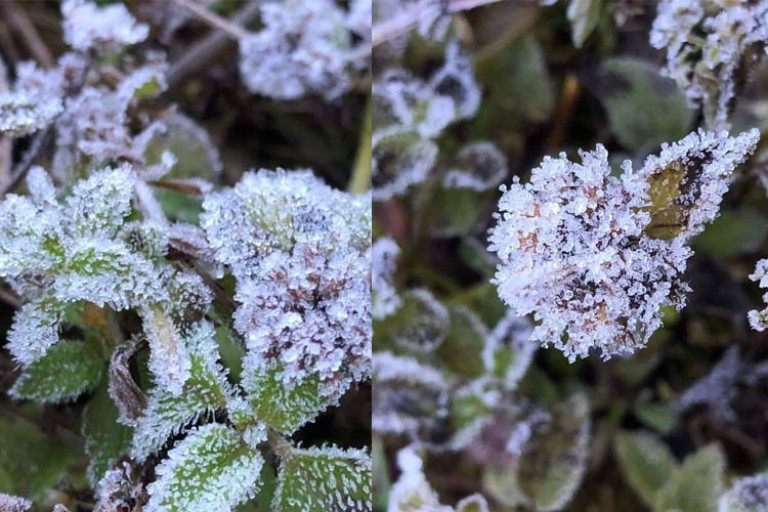 วันที่ 3 ธ.ค.64 ผู้สื่อข่าวรายงานว่า จากสภาพอากาศทางภาคเหนือ หนาวเย็นอย่างต่อเนื่องทำให้บนดอยสูงอุณหภูมิลดต่ำลง ในวันนี้ เป็นเลขตัวเดียว อีกเแ็นครั่งที่ 5ที่หน่วยพิทักษ์ยอดดอยอินทนนท์ลดเหลือ 5 องศาเซลเซียส เกิดน้ำค้างแข็ง(เหมยขาบ)บนยอดหญ้า ติดต่อมาหลายวัน นักท่องเที่ยวแห่สัมผัสอากาศหนาวเย็นจับใจ นายเกรียงไกร ไชยพิเศษ หน.อุทยานแห่งชาติดอยอินทนนท์ กล่าวว่า ในวันนี้อุณหภูมิบนยอดดอยอินทนนท์ วัดได้ 5 องศาเซลเซียส ทำให้เกิดน้ำค้างแข็งบริเวณที่ทำการยอดดอย ขณะที่บรรยากาศวันนี้ท้องฟ้าเปิดนักท่องเที่ยวที่ไปรอชมพระอาทิตย์ขึ้นที่บริเวณจุดชมวิวกิ่วแม่ปานต่างไม่ผิดหวังได้เห็นพระอาทิตย์สาดแสงโผล่ขึ้นมาเหนือทะเลหมอกอย่างสวยงามหลายคนต่างตั้งกล้องถ่ายภาพเก็บไว้เป็นที่ระลึกหลังจากนั้นก็จะพากันเดินเข้าไปชมธรรมชาติตามเส้นทางศึกษาธรรมชาติกิ่วแม่ปานที่มีพรรณไม้หายาก อย่างดอกกุหลาบพันปี สีแดง(คำแดง) ต้นแรกที่บริเวณชมวิว8ได้เบ่งบานสีแดงสดอย่างสวยงาม นักท่องเที่ยวสามารถยื่นชม ที่จุดชมวิว ที่ต้องเดินไปตามเส้นทางธรรมชาติ ดูวิวทิวทัศน์ที่สวยงามและเป็นแหล่งใหญ่ที่มีกุหลาบพันปีคำแดง คำขาว ที่จะเบ่งบานอวดสายตานักท่องเที่ยวในช่วงนี้ และหน่วยพิทักษ์ป่ายอดดอยอินทนนท์ นักท่องเที่ยวพากันถ่ายภาพอย่างคึกคัก ซึ่งอุณหภูมิที่กิ่วแม่ปาน อุณหภูมิลดลงมาเหลือเพียง 5 องศาเซลเซียส ส่วนที่ยอดดอย 5 องศาเซลเซียส ที่ทำการอุทยานแห่งชาติดอยอินทนนท์ 14 องศาเซลเซียส ทางอุทยานแห่งชาติทุกแห่งของเชียงใหม่ ยังเน้นย้ำเรื่องของมาตรการเฝ้าระวัง และป้องกันการแพร่ระบาดของโควิด 19 ย้ำต้องมีเอกสารการฉีดวัคซีนมาแสดงกันทุกคน ก่อนเข้าด่านนักท่องเที่ยวต้องสวมหน้ากากอนามัยทุกครั้งในที่ชุมชน ล้างมือให้สะอาด ทางเจ้าหน้าที่มีการพ่นน้ำยาฆ่าเชื้อทำความสะอาด ตามจุดที่มีนักท่องเที่ยวเข้าไปใช้บริการเป็นประจำทุกวัน เพื่อสร้างความมั่นใจให้กับนักท่องเที่ยว