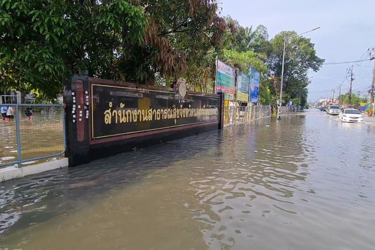 วันที่ 3 ธ.ค.64 สถานการณ์อุทกภัยในพื้นที่นครศรีธรรมราช แม้ว่าตลอดทั้งคืนที่ผ่านมาฝนจะหยึดตกทิ้งช่วงไปหลายชั่วโมงจนถึงเช้านี้ แต่ปริมาณน้ำป่าจำนวนมหาศาลปริมาณการไหลสูงถึงกว่า 350 ลบ.ม.ต่อวินาที ที่หลากมาจากเทือกเขาหลวงต้นน้ำท่าดี บ้านคีรีวง ตำบลกำโลน อำเภอลานสกา จังหวัดนครศรีธรรมราช ได้หลากเข้าท่วมชุมชนเมืองนครศรีธรรมราช ตามการแจ้งเตือนของทางการ โดยช่วงเช้าวันนี้ศูนย์ปฏิบัติการตรวจโควิดเชิงรุก ในสำนักงานสาธารณสุขจังหวัดนครศรีธรรมราช ซึ่งเป็นศูนย์ปฏิบัติการชั่วคราวที่มีขนาดใหญ่สที่สุด อยู่ในสภาพถูกน้ำท่วมสูงต้องปิดการตรวจเชื้อเป็นการชั่วคราว ขณะที่เจ้าหน้าที่ระบุว่าโชคดีที่ได้เก็บเก้าอี้ อุปกรณ์ที่เกี่ยวข้องออกจากพื้นที่ได้ทั้งหมดก่อนที่น้ำจะหลากเข้าท่วมทำให้ไม่เกิดความเสียหาย แต่ต้องหยุดการตรวจชั่วคราวจนกว่าสถานการณ์จะเข้าสู่ภาวะปกติ ส่วนผู้ที่สงสัยว่าจะติดเชื้อหรือผู้สัมผัสเสี่ยงสูงให้ไปตรวจที่โรงพยาบาลใกล้บ้านได้ก่อน