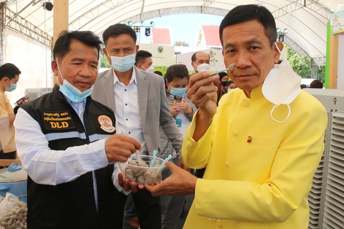 วันที่ 8 ธ.ค.2564 ที่บริเวณหน้าศาลากลาง จ.ขอนแก่น นายพันธ์เทพ เสาโกศล รอง ผวจ.ขอนแก่น เป็นประธานเปิดงานมหกรรมจิ้งหรีด สินค้าดี สินค้าเด่น ยกระดับมาตรฐานสินค้าเกษตร จ.ขอนแก่น พร้อมงานแสดงสินค้าแปรรูปจากจิ้งหรีด ซึ่งสำนักงานปศุสัตว์ จ.ขอนแก่น ได้กำหนดจัดกิจกรรมขึ้นโดยมีเกษตรกรและผู้ประกอบการจิ้งหรีด ร่วมนำผลผลิตจากจิ้งหรีด ทั้งแบบสด ,ฟาร์มและแบบแปรรูปมาแสดงและจำหน่ายรวมกว่า 50 รายการท่ามกลางความสนใจจากนักวิชาการ และผู้ที่ชื่นชอบในการรับประทานจิ้งหรีดเข้าร่วมกิจกรรมเป็นจำนวนมาก นายพันธุ์เทพ เสาโกศล รอง ผวจ.ขอนแก่น กล่าวว่า ขอนแก่นเป็นพื้นที่ในการผลิตจิ้งหรีดทั้งระบบตั้งแต่ต้นน้ำ กลางน้ำและปลายน้ำที่สมบูรณ์แบบแห่งหนึ่งในประเทศไทย โดยปัจจุบันมีฟาร์มจิ้งหรีดทั้งสิ้น 376 ฟาร์ม และมีเกษตรกรเข้าร่วมระบบส่งเสริมการเกษตรแบบแปลงใหญ่ จำนวน 6 แปลง ประกอบด้วยพื้นที่ อ.เมืองขอนแก่น,น้ำพอง,โนนศิลา,พล,อุบลรัตน์,และพระยืน โดยมีฟาร์มจิ้งหรีดผ่านมาตรฐานฟาร์ม GAP จำนวน 23 ฟาร์ม โดยมีผลผลิตจิ้งหรีด 490 ตันต่อปี ซึ่งขณะนี้มีฟาร์มจิ้งหรีดที่อยู่ระหว่างการปรับปรุงฟาร์มเพื่อเข้าสู่มาตรฐานการปฎิบัติทางการเกษตรที่ดี หรือ GAP อีกจำนวน 49 ฟาร์ม โดยมีศูนย์รวบรวมจิ้งหรีดตัวสดและต้มบรรจุถุงแช่แข็ง รวม 2 ศูนย์และมีการจัดตั้งวิสาหกิจชุมชนกลุ่มเศรษฐกิจพอเพียงเลี้ยงจิ้งหรีดบ้านแสนตอ อ.น้ำพอง และ วิสาหกิจชุมชนคนค้นแมลง อ.ชุมแพ เพื่อขยายขอบเขตความสามารถกับเกษตรกรในพื้นที่และพื้นที่ใกล้เคียง “ ขณะที่ด้านการตลาดปัจจุบันได้มีการแปรรูปเป็นผลิตภัณฑ์ต่างๆ ไม่ว่าจะเป้นสะดิ้งผง,จิ้งหรีดอัดเม็ด,แจ่วบงจิ้งหรีด,น้ำพริกเผาจิ้งหรีด,จิ้งหรีดคั่วสมุนไพรอัดกระป๋อง,จิ้งหรีดทอดปลอดน้ำมันหลากรส,ลูกชิ้นจิ้งหรีด,พาสต้าโปรตีนจิ้งหรีดเส้นสด เส้นแห้ง รวมไปถึงผงโปรตีนจิ้งหรีดและไส้กรอกอีสานจิ้งหรีดรสแซ่บ ที่มีการส่งจำหน่ายทั้งในประเทศและต่างประเทศ ซึ่งจากการสำรวจข้อมูลในปี 2563 พบว่าไทยมีจำนวนเกษตรกรที่เลี้ยงจิ้งหรีด รวมทั้งสิ้น 25,218 ราย แบ่งเป็นจำนวนบ่อ 272,922 บ่อและมีผลผลิตรวมประมาณ 24,563 ตันต่อปี ในขณะที่ในช่วงที่มีการแพร่ระบาดของโควิด-19 ทำให้ยอดการส่งออกของไทยลดลงเนื่องจากบางประเทศไม่รับสินค้าจากการแพร่ระบาดที่เกิดขึ้น แต่โดยรวมถ้าสถานการณ์ดีขึ้นตัวเลขและความต้องการก็จะเพิ่มสูงขึ้น เนื่องจากมีการขาดช่วงของการสั่งซื้อสินค้า” รอง ผวจ.ขอนแก่น กล่าวต่ออีกว่า ปัจจุบันไทยมีการส่งออกจิ้งหรีดมากที่สุดไปใน 3 ประเทศ คือแคนนาดา ยอดการส่งออก 