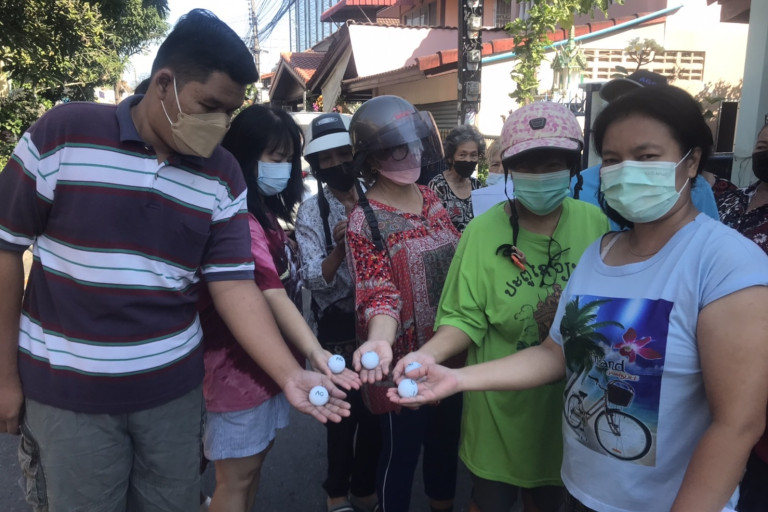 ผู้สื่อข่าวได้เดินทางตรวจสอบพบชาวบ้านหลาย 10 คน กำลังจับกลุ่มคุยถึงเรื่องที่เกิดขึ้นบางคนถึงต้องสวมหมวกกันน็อคเดินในซอย พร้อมนำลูกกอล์ฟที่เก็บได้ในชุมชนจำนวน 8 ลูก มาให้ผู้สื่อข่าวดู