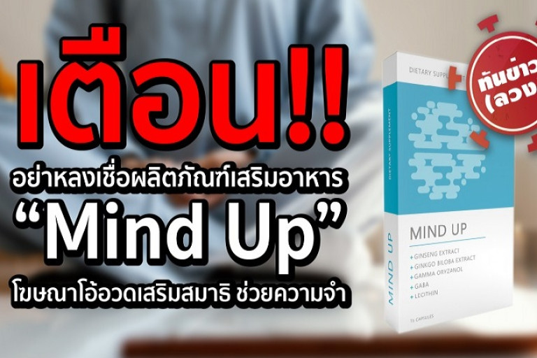สำนักงานคณะกรรมการอาหารและยา (อย.) แจ้งว่า ได้พบผลิตภัณฑ์เสริมอาหาร Mind Up ขายทางเว็บไซต์ ระบุข้อมูลสรรพคุณ “...เสริมสร้างสมาธิ พัฒนาความจำ เสริมสร้างพัฒนาการของสมอง ช่วยให้สมองทำงานได้ดีขึ้น มีการรับรองมาตรฐานการผลิตจาก GMP...” เลขที่ใบจดแจ้ง 24-1-00761-5-0501 ซึ่งอย.ได้ตรวจสอบข้อเท็จจริง พบว่า เป็นข้อมูลลวง เนื่องจากเป็นการโฆษณาแสดงคุณประโยชน์ คุณภาพ หรือสรรพคุณของอาหาร โดยไม่ได้รับอนุญาตจาก อย. และยังโฆษณาเป็นเท็จหรือหลอกลวงให้เกิดความหลงเชื่อโดยไม่สมควร โดยมีการสร้างเรื่องราวเกี่ยวกับประสบการณ์การรับประทานผลิตภัณฑ์ดังกล่าว มาใช้เพื่อเพิ่มความน่าเชื่อถือ ทั้งนี้ อย.ได้สั่งระงับการโฆษณาผลิตภัณฑ์เสริมอาหารดังกล่าวทางเว็บไซต์ และดำเนินการตามกฎหมายกับผู้ที่เกี่ยวข้องแล้ว