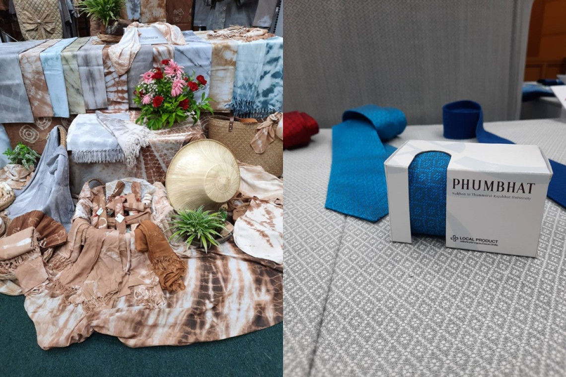 ผศ.ปวีณา ปรวัฒน์กุล อาจารย์ประจำสาขาวิชาเคมี คณะวิทยาศาสตร์ และเทคโนโลยี มหาวิทยาลัยราชภัฏนครศรีธรรมราช เล่าถึงงานวิจัย “การพัฒนาผ้าพื้นถิ่นที่มีคุณสมบัติป้องกันแสงยูวี ต้านเชื้อแบคทีเรีย และสะท้อนน้ำด้วยวัสดุนาโน” โดยการสนับสนุนจาก กองทุนส่งเสริมวิทยาศาสตร์ วิจัย และนวัตกรรม (กองทุนส่งเสริม ววน.) ว่า มหาวิทยาลัยราชภัฏนครศรีธรรมราช เป็นมหาวิทยาลัยที่มีบทบาทสำคัญในการพัฒนาท้องถิ่น โดยที่่ผ่านมาได้เข้าร่วมพัฒนาชุมชน ด้วยการดำเนินงานวิจัยหลากหลายโครงการ เช่น โครงการทุนท้าทายไทยปีที่ 1 ได้พัฒนาผ้ามัดย้อมลายสายน้ำตาปีไหลหลากจากกลุ่มวิสาหกิจชุมชนต้นน้ำตาปีแฮนด์เมด โครงการทุนท้าทายไทยปีที่ 2 พัฒนาผ้าบาติกลายนกฮูกและป่าประจากกลุ่ม 4 ป.บาติก และโครงการมหาวิทยาลัยเพื่อพัฒนาท้องถิ่นตามพระราโชบายที่เน้นการพัฒนาพื้นที่ ตามยุทธศาสตร์การพัฒนาท้องถิ่น ซึ่งได้ร่วมดำเนินการพัฒนาผลิตภัณฑ์ผ้าบาติกกลุ่มสตรีพัฒนาบาติก บ้านสวนขัน จากกลุ่มวิสาหกิจชุมชนสวนขันเกษตรกรยั่งยืน เป็นต้น