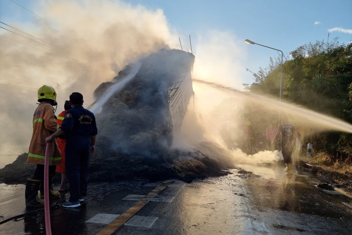 จากการสอบถามนายบุญเลิศ นาคภาสี อายุ 57 ปี คนขับรถบรรทุก ก็เล่าให้ฟังว่า กำลังจะขับรถบรรทุกฟางไปส่งที่จ.เพชรบุรี ได้มีคนขับรถแซงขึ้นมาบอกว่ารถไฟไหม้ฟางท้ายรถ พอได้ยินก็เลยจอดรถและยกดั้มกองฟางลง ซึ่งคาดว่ารถน่าจะไปโดนเกี่ยวสายไฟที่ห้อยมาข้างทาง ซึ่งรวมทั้งมีสายสื่อสารด้วยจนทำให้เกิดเพลิงลุกไหม้ ซึ่งปกติตนวิ่งทุกวันก็ไม่เคยเกิดขึ้น และอยากให้หน่วยงานที่เกี่ยวข้องมาแก้ไข และถือว่าซวยส่งท้ายปี ค่าเสียหายเฉพาะก้อนฟางประมาณ หมื่นกว่าบาท ไม่รวมค่าเสียหายของตัวรถที่ถูกไฟไหม้ด้วย