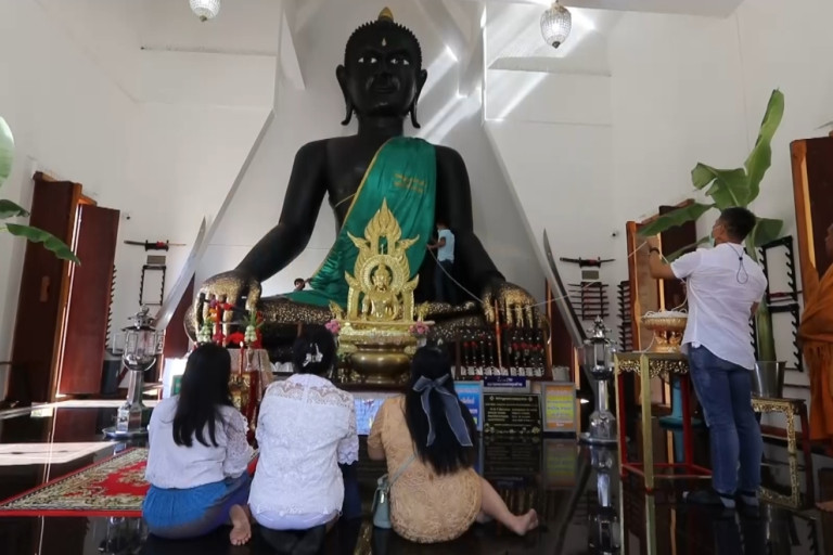 ที่วัดดงเสลา ตำบลองค์พระ อำเภอด่านช้าง จังหวัดสุพรรณบุรี ประชาชนและนักท่องเที่ยวไหว้พระขอพรหลวงพ่อขุนด่าน หรือพระพุทธสุพรรณมุนีศรีศาสดา พระพุทธรูปศักดิ์สิทธิ์ ภายในอุโบสถ์มหาอุตม์ และร่วมกันแห่ผ้าสีเขียว กว้าง2 เมตร ยาว 13 เมตร ในขบวนแห่มีผู้ถือดาบนำหน้าขบวนแห่ผ้า ตามด้วยขบวนนางรำมาในชุดไทย ย้อนยุคสวยงาม รำนำหน้าขบวนแห่ผ้ากันอย่างสนุกสนาน ส่วนเด็กๆมาในชุดโบราณย้อนยุคร่วมขบวนด้วย ซึ่งมีเครื่องขยายเสียงที่มีนักดนตรีแต่งกายมาในชุดทหารสีแดง สะพายดาบ เป็นนักรบสมัยโบราณ มาเล่นดนตรีอย่างสนุกสนาน ขบวนแห่วนรอบโบสถ์มหาอุตถ์จำนวน3รอบ