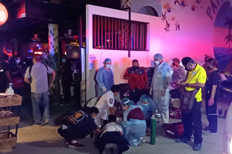 สอบถามทีมตรวจหาเชื้อโควิด-19 ทราบว่า ขณะที่กำลังตรวจหาผู้ติดเชื้ออยู่ด้านหน้าสถานบันเทิงพัทยาบีช นั้น พบเห็นกลุ่มชายฉกรรจ์ ไล่ตีกันมา 7-8 คน ท่ามกลางนักท่องเที่ยวจำนวนมาก แต่ผู้บาดเจ็บวิ่งหนีตายกระทั่งพลาดท่าล้ม ทำให้กลุ่มคู่อริไล่ตามมาเตะเข้าที่ใลหน้า กระทืบซ้ำ แล้วใช้ของมีคมแทงปักเข้าที่หน้าอก จนนอนแน่นิ่งไป หลังเกิดเหตุก็พากันวิ่งหลบหนีหายไปอย่างรวดเร็ว