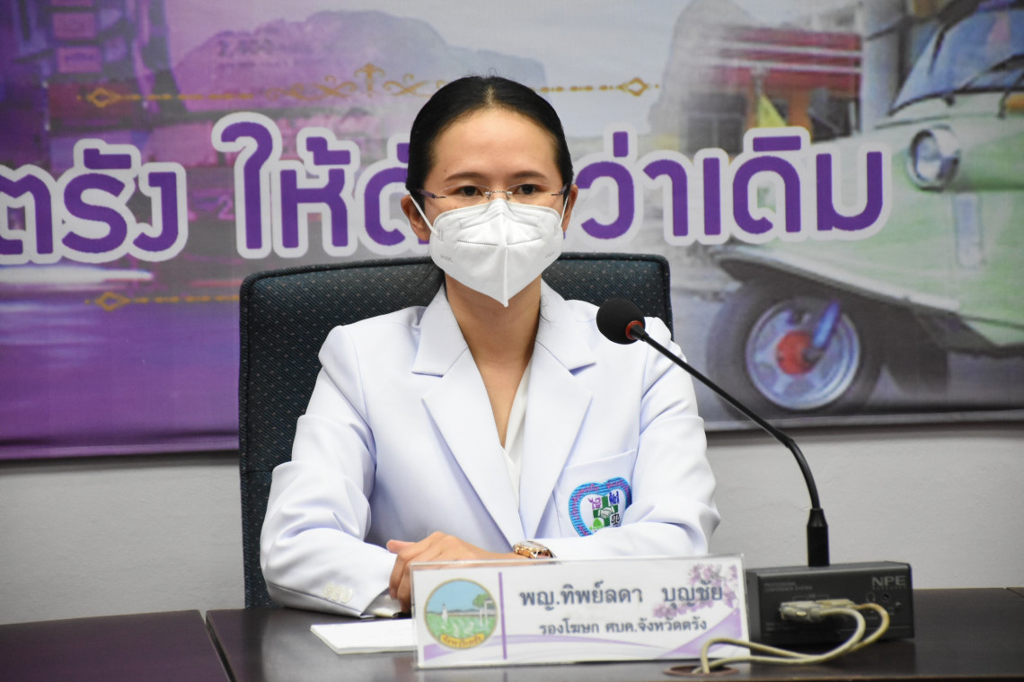 วันนี้ (6 ม.ค.2565) ที่ศูนย์แถลงข่าว ศูนย์บริหารสถานการณ์การแพร่ระบาดของโรคติดเชื้อไวรัสโคโรนา 2019 จังหวัดตรัง ห้องลิบง ชั้น 2 ศาลากลางจังหวัดตรัง แพทย์หญิงทิพย์ลดา บุญชัย นายแพทย์ชำนาญการ โรงพยาบาลตรัง ในฐานะรองโฆษกศูนย์บริหารสถานการณ์การแพร่ระบาดของโรคติดเชื้อไวรัสโคโรนา 2019 จังหวัดตรัง แถลงข่าวสถานการณ์การแพร่ระบาดของโรคติดเชื้อไวรัสโคโรนา 2019 ของจังหวัดตรัง