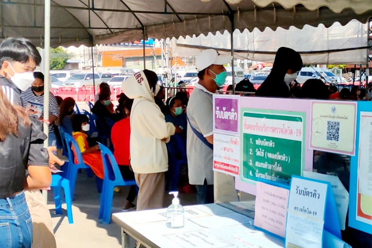 ขณะเดียวกันช่วงบ่ายวันนี้ ที่บริเวณหน้าอาคารผู้ป่วยนอก สถานที่ตั้งคลินิกโรคระบบทางเดินหายใจ โรงพยาบาลมหาราช นครราชสีมา พบประชาชนที่มีไทม์ไลน์เชื่อมโยงตามประกาศของสำนักงานสาธารณสุขจังหวัด (สสจ.) นครราชสีมา “ขอให้ผู้ใช้บริการ Pee2 และ Bar&Bistro สถานบันเทิงยอดฮิตของวัยรุ่นโคราช ได้ทยอยเดินทางไปขอรับบริการตรวจหาเชื้อ RC-PCR อย่างต่อเนื่อง โดยมีนายแพทย์เจษฎ์ บุณยวงศ์วิโรจน์ รองผู้อำนวยการพร้อมบุคลากรทางการแพทย์ได้เตรียมให้บริการทางการแพทย์โดยเพิ่มเต้นท์รองรับผู้ที่ใช้บริการค่อนข้างหนาแน่น เพื่อเว้นระยะห่างทางสังคมไม่ต้องมารวมตัวอย่างแออัด