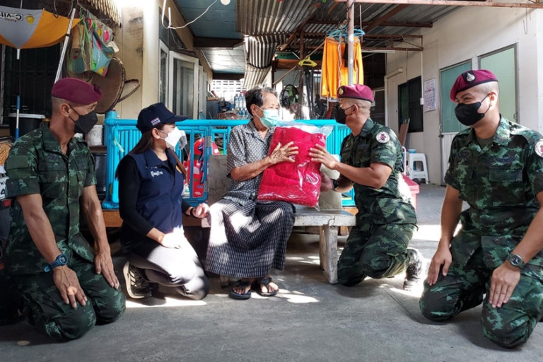พร้อมทั้ง ร่วมกันเดินเท้าลงพื้นที่ นำผ้าห่มกันหนาว ซึ่งได้รับมอบจากกองทัพบก เข้าพบปะเยี่ยมเยียนให้กำลังใจประชาชน ผู้สูงอายุ ผู้ป่วยติดเตียง ผู้พิการ ผู้ยากไร้ และผู้ประสบภัยหนาว จำนวน 30 ครอบครัว ในพื้นที่ หมู่ที่ 2 ตำบลป่าตาล อำเภอเมือง จังหวัดลพบุรี เพื่อช่วยเหลือบรรเทาความเดือดร้อนให้แก่ประชาชน ที่ได้รับผลกระทบจากสภาพอากาศที่หนาวเย็น อุณหภูมิต่ำลดลง โดยเฉพาะในช่วงเวลากลางคืน ตลอดจนเพื่อเป็นการสร้างสัมพันธภาพที่ดีระหว่างชุมชน และหน่วยงานทหาร และแสดงออกถึงความห่วงใยของกองทัพบก ที่มีต่อประชาชน โดยได้รับการตอบรับจากประชาชน เป็นอย่างดี และมีความซาบซึ้งใจที่ เจ้าหน้าที่ทหาร ได้เข้ามอบผ้าห่ม และให้กำลังใจและคอยให้การช่วยเหลือประชาชนในทุกโอกาส ซึ่งทุกขั้นตอนในการปฏิบัติ กำลังพลของหน่วยได้ยึดมาตรการเฝ้าระวังป้องกันการแพร่ระบาดของเชื้อไวรัส Covid-19 ตามที่กองทัพบกห่วงใยอย่างเคร่งครัด ตามมาตรการควบคุมโรคที่ ศบค. กำหนด เพื่อความปลอดภัยทั้งแก่ผู้ให้และผู้รับด้วย