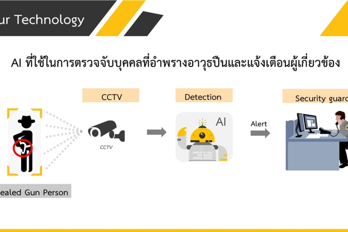 ดร.ธนพงศ์ อินทระ หัวหน้าคณะวิจัย กล่าวว่า การก่ออาชญากรรมเกิดขึ้นบ่อยครั้ง ทำให้เกิดความสูญเสียเป็นอย่างมาก ซึ่งเป็นเหตุให้ห้างสรรพสินค้า ร้านทอง และธนาคาร ต้องมีการทำประกันภัยอาชญากรรมเพื่อที่จะได้รับการชดเชยหากเกิดเหตุการณ์ที่ไม่คาดคิดขึ้น แต่อย่างไรก็ตาม การชดเชยไม่อาจชดเชยชีวิตที่อาจมีการสูญเสียไปได้ ทางคณะผู้วิจัยจึงพัฒนา ระบบสำหรับตรวจจับบุคคลที่มีความเสี่ยงในการอำพรางอาวุธปืนโดยการวิเคราะห์วิดีโอจากกล้อง CCTV แบบ Realtime ด้วยเทคโนโลยีปัญญาประดิษฐ์ (Artificial Intelligence : AI) แบบการประมวลผลเชิงลึก (Deep Learning) โดย AI จะตรวจจับสิ่งที่อยู่ในเหตุการณ์ ซึ่งจะระบุทั้งบุคคลที่มีพฤติกรรมปกติ และที่แสดงพฤติกรรมที่มีความเสี่ยงในการอำพรางอาวุธปืน โดยการระบุว่าเป็นบุคคลกลุ่มใดจะใช้การประมวลผลเชิงลึก ในการแบ่งแยกบุคคลที่แสดงพฤติกรรมที่ต่างกัน และแจ้งเตือนไปยังบุคคลที่ระบุให้ได้รับข้อความแจ้งเตือน เพื่อดำเนินการป้องกันหรือระงับเหตุต่อไป ปัจจุบันระบบดังกล่าว อยู่ในระหว่างการพัฒนาระบบเพื่อนำไปใช้จริง ซึ่งจะช่วยให้ลดการเกิดความเสียหายทั้งทางด้านชีวิตและทรัพย์สิน ลดระดับการเกิดเหตุการณ์ความรุนแรงให้เล็กลง และเกิดการต่อยอดทางธุรกิจที่มาจากงานวิจัยต่อไป