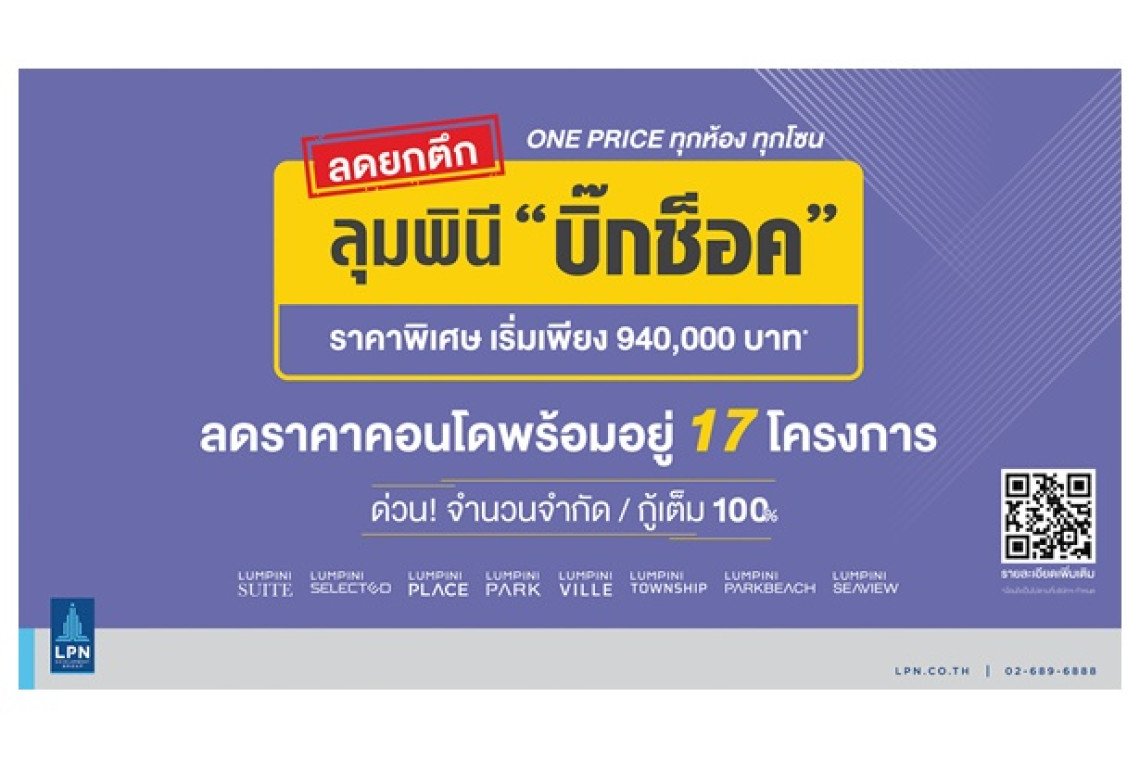“แคมเปญ ลุมพินี “บิ๊กช็อค ลดยกตึก ขายราคาเดียว” เป็นแคมเปญที่นำคอนโดมิเนียมพร้อมอยู่ในราคาต้นทุนเดิม มามอบส่วนลดพิเศษ เพื่อให้ผู้ซื้อมีโอกาสเป็นเจ้าของได้ง่ายขึ้นด้วยต้นทุนในการซื้อที่ต่ำกว่า เหมาะสำหรับการซื้อเพื่ออยู่อาศัยและการลงทุนซื้อเพื่อปล่อยเช่า ที่ให้อัตราผลตอบแทนเฉลี่ย 4-7% ขึ้นอยู่กับทำเล โดย LPN ตั้งเป้ายอดขายจากแคมเปญ ลุมพินี “บิ๊กช็อค ลดยกตึก ขายราคาเดียว” ไว้ที่ 2,000 ล้านบาท ซึ่งเป็นส่วนหนึ่งของเป้าหมายยอดขายรวมไตรมาสแรกของปี 2565 ที่ 3,000 ล้านบาท”