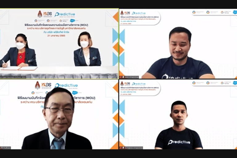 วันที่ 24 ม.ค.65 มหาวิทยาลัยขอนแก่น โดย คณะบริหารธุรกิจและการบัญชี ได้ลงนามบันทึกความเข้าใจ (MOU) ร่วมกับ บริษัท พรีดิกทิฟ จำกัด (Google Partner) โดยภายในพิธีได้รับเกียรติจาก รองศาสตราจารย์ นพ.ชาญชัย พานทองวิริยะกุล อธิการบดีมหาวิทยาลัยขอนแก่น รองศาสตราจารย์ ดร.เพ็ญศรี เจริญวานิช คณบดีคณะบริหารธุรกิจและการบัญชี ผู้ช่วยศาสตราจารย์ ดร.ดลฤทัย โกวรรธนะกุล รองคณบดีฝ่ายวิชาการ พร้อมด้วยตัวแทนผู้บริหารจาก บริษัท พรีดิกทิฟ จำกัด คุณกัญ ธัญปราณีตกุล Chief growth Officer กรรมการบริหารบริษัท พรีดิกทิฟ จำกัด คุณบุญฑริก มหาวิศวรี ผู้จัดการอาวุโส บริษัท พรีดิกทิฟ จำกัด ร่วมลงนามบันทึกความเข้าใจ