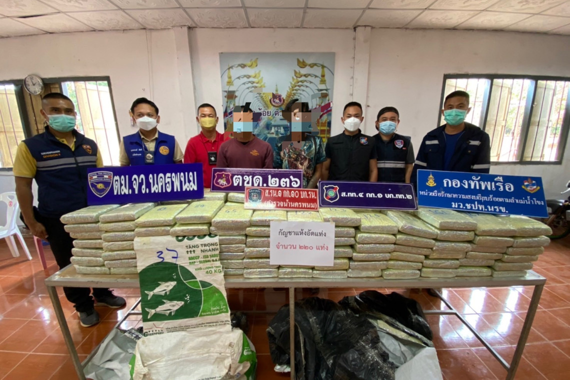 วันที่ 25 มกราคม 2565 ที่กองร้อยตำรวจตระเวนชายแดนที่ 236 นครพนม พ.ต.อ.สิปปนันท์ สรณ์คุณแก้ว ผกก.ตชด.23 มอบหมายให้ พ.ต.ท.ชิษณุพงศ์ ทองเกื้อ ผบ.ร้อย ตชด.236 นครพนม พร้อมเจ้าหน้าที่ปฏิบัติการข่าว แถลงการณ์จับกุมขบวนการค้ากัญชาข้ามชาติ 2 ราย มี นายสายัณห์ แสงทอง อายุ 33 ปี พร้อม นายวิทยา สิทธิมาตร อายุ 35 ปี ชาว อ.ปทุมราชวงศา จ.อำนาจเจริญ ยึดของกลางกัญญชาอัดแท่ง จำนวน 220 แท่ง รวมน้ำหนักแท่งละ 1 กิโลกรัม รวมน้ำหนักแท่งละ 220 กิโลกรัม รวมมูลค่าประมาณ 2 ล้านบาท และรถยนต์ของบกลางใช้กระทำผิด ยี่ห้อฮอนด้า ซีอาร์วี สีบอร์น ทะเบียน กพ 1485 กาญจนบุรี โดยตรวจยึดได้หลังเจ้าหน้าที่ ตชด.236 วางแผนเข้าสกัดจับกุมได้ ขณะผู้ต้องหาไปรับของกลางกัญชา ที่มีการลักลอบขนมาแบบกองทัพมด จากประเทศเพื่อนบ้าน สปปป.ลาว นำบรรทุกใส่รถมาจอดพัก ในพื้นที่ ต.เวินพระบาท ต.เวินพระบาท อ.ท่าอุเทน จ.นครพนม จนกระทั่งสามารถตรวจค้นจับกุมได้ เมื่อกลางดึกคืนที่ผ่านมา
