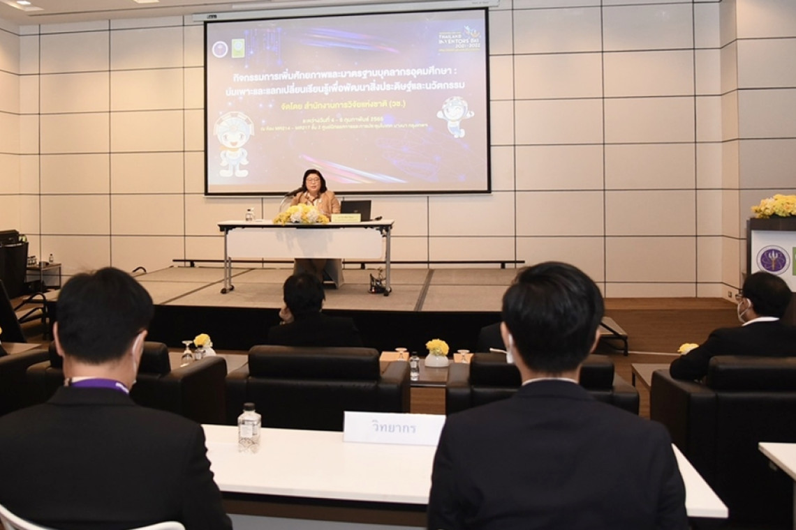 สำนักงานการวิจัยแห่งชาติ(วช.) กระทรวงการอุดมศึกษา วิทยาศาสตร์ วิจัยและนวัตกรรม ได้ร่วมเป็นกลไกสนับสนุนการพัฒนาบุคลากรวิจัยและนวัตกรรม และการสร้างเครือข่ายการวิจัย ได้จัดกิจกรรมการเพิ่มศักยภาพและมาตรฐานบุคลากรอุดมศึกษา : บ่มเพาะและแลกเปลี่ยนเรียนรู้เพื่อพัฒนาสิ่งประดิษฐ์และนวัตกรรมขึ้น เพื่อส่งเสริมและสนับสนุนการพัฒนาศักยภาพบุคลากรสายอุดมศึกษาให้ได้รับการพัฒนาสู่มาตรฐานด้านการวิจัยและนวัตกรรมที่ตอบสนองยุทธศาสตร์ชาติตามความต้องการของสังคม ชุมชน ภาครัฐและเอกชน รวมถึงการยกระดับคุณภาพชีวิต การสร้างมูลค่าเพิ่ม และขีดความสามารถของประเทศในการแข่งขันระดับนานาชาติ โดยในปี 2565 วช. ได้กำหนดกลุ่มเรื่องผลงานสิ่งประดิษฐ์และนวัตกรรมให้มีความสอดคล้องกับกลุ่มเรื่องของ Thailand 4.0 และ BCG โมเดล 4 กลุ่ม ได้แก่ การเกษตรและอุตสาหกรรมการเกษตร, การสาธารณสุข สุขภาพ และเทคโนโลยีทางการแพทย์, การพัฒนาเทคโนโลยีปัญญาประดิษฐ์ อุปกรณ์อัจฉริยะ พลังงานและสิ่งแวดล้อม, และการพัฒนาคุณภาพชีวิตและเศรษฐกิจสร้างสรรค์ ซึ่งการจัดกิจกรรมมีทั้งในรูปแบบ online และ onsite โดยได้รับความกรุณาจากผู้ทรงคุณวุฒิที่มีความรอบรู้ ความเชี่ยวชาญ และประสบการณ์ในการพัฒนาผลงานในการพัฒนาผลงานนวัตกรรมในเวทีระดับชาติและระดับนานาชาติ ที่จะมาให้ความรู้ ความเข้าใจ กับทีมสายอุดมศึกษา เพื่อพัฒนาผลงานนวัตกรรม ซึ่งจะเป็นกลไกหนึ่งในการพัฒนากำลังคน ด้านวิทยาศาสตร์ เทคโนโลยี วิจัยและนวัตกรรม ในการขับเคลื่อนการพัฒนาและสร้างนวัตกรรมในอนาคต ทั้งนี้ วช. ยังได้ส่งเสริมและสนับสนุนผลงานนวัตกรรมของสายอุดมศึกษาในหลายรูปแบบ อาทิ การนำเสนอผลงานสิ่งประดิษฐ์และนวัตกรรมในเวทีระดับชาติ, การนำเสนอผลงานสิ่งประดิษฐ์และนวัตกรรมในเวทีระดับนานาชาติ, การสนับสนุนพัฒนา ต่อยอดขยายผล กิจกรรมดังกล่าว จัดขึ้นภายในงาน"วันนักประดิษฐ์ ประจำปี 2565 ระหว่างวันที่ 4-6 กุมภาพันธ์ 2565 โดย ดร.วิภารัตน์ ดีอ่อง ผู้อำนวยการสำนักงานการวิจัยแห่งชาติ เป็นประธานในพิธีเปิด เมื่อวันที่ 4 กุมภาพันธ์ 2565 ณ ศูนย์นิทรรศการและการประชุมไบเทค ซึ่งวช.ได้วางเป้าหมายให้กิจกรรมดังกล่าวเป็นกลไกสำคัญ ที่จะพัฒนาสมรรถนะและเทคนิคด้านการประดิษฐ์คิดค้นและนวัตกรรมของคณาจารย์และนิสิตนักศึกษาในระดับอุดมศึกษา ให้สามารถพัฒนาผลงานประดิษฐ์และนวัตกรรม ที่รองรับโจทย์และความต้องการของสังคมและประเทศ โดยจะมีพิธีปิดและมอบรางวัลกิจกรรมติดดาว ให้แก่ผู้ร่วมกิจกรรมบ่มเพาะ ที่นำเสนอผลงานด้านการประดิษฐ์คิดค้นแ