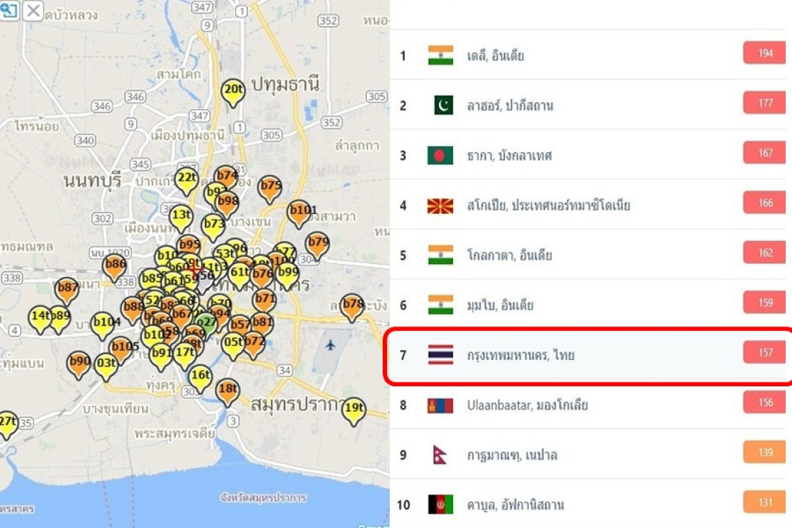 ทั้งนี้ www.iqair.com ซึ่งรายงานคุณภาพอากาศและจัดอันดับเมืองมลพิษโลก โดยรายงานแบบเรียลไทม์ พบว่าเช้านี้ เมืองกทม.ของไทย ติดอันดับอยู่ในอันดับที่ 7 เมืองมลพิษโลก โดยดัชะนีคุณภาพอากาศอยู่ที่ 157 US AQI
