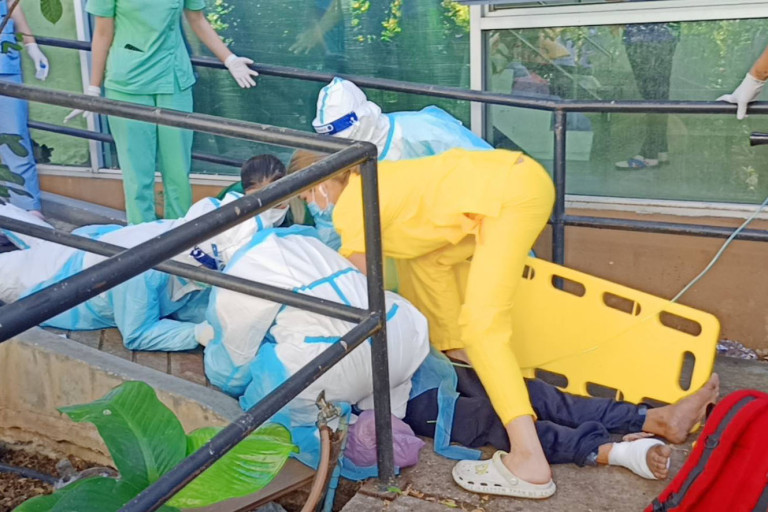 วันที่ 19 กุมภาพันธ์ 2565 เวลา 15.30 น.เจ้าหน้าที่ตำรวจ สภ.บางเสาธง สมุทรปราการ ได้รับแจ้งมีผู้พลัดตกจากที่สูง ภายในโรงแรมที่ใช้เป็นสถานที่กักตัวแห่งหนึ่ง ในตำบลบางเสาธง อ.บางเสาธง สมุทรปราการ หลังรับแจ้งจึงพร้อมด้วยเจ้าหน้าที่กู้ชีพโรงพยาบาลบางเสาธฃ และเจ้าหน้าที่มูลนิธิร่วมกตัญญูเดินทางตรวจสอบที่เกิดเหตุ โดยในที่เกิดเหตุตรงทางลาดสำหรับคนพิการขึ้นตัวอาคาร พบนายเอ(นามสมมุติ)นอนแน่นิ่งอยู่กับพื้น หายใจโรยริน เจ้าหน้าที่ต้องสวมชุด PPE ให้การช่วยเหลือเบื้องต้นก่อนเร่งนำส่งโรงพยาบาลบางบ่อ จากการสอบถามเจ้าหน้าที่ที่ดูแลสถานที่กักตัวผู้ป่วยโควิดแห่งนี้ ทราบว่า โรงแรมแห่งนี้ถูกใช้เป็นสถานที่กักตัวสำหรับผู้ป่วยโควิดของโรงพยาบาลเอกชนแห่งหนึ่งในจังหวัดสมุทรปราการ โดยผู้ได้รับบาดเจ็บรายนี้เป็นผู้ป่วยติดเชื้อโควิด-19 ได้เข้ามาพักรักษาตัวได้เพียง 3 วัน ตอนเข้ามาก็ปกติเหมือนผู้ป่วยรายอื่น และไม่ได้มีอาการซึมเศร้าหรือมีท่าทีจะก่อเหตุแต่อย่างใด ส่วนสาเหตุต้องรอตรวจสอบก่อนว่าเกิดจากอุบัติเหตุหรือตั้งใจก่อเหตุ ด้านผู้ป่วยโควิดอีกรายที่อยู่ตึกตรงข้าม ซึ่งเป็นผู้เห็นเหตุการณ์ เล่าว่า พักอยู่ในห้องฝั่งตรงข้าม ตอนแรกตนเห็นชายดังกล่าวมายื่นอยู่ตรงหน้ากระจกแล้วเปิดกระจกออกมา ตนก็นึกว่าเป็นเจ้าหน้าที่ พอหันไปสังเกตอีกทีเห็นชายคนดังกล่าว ห้อยตัวออกมาด้านนอกแล้ว แต่ไม่กี่นาทีพบว่าชายคนดังกล่าวปล่อยมือออกและพลัดตกลงมาร่างกระแทกพื้น จนแน่นิ่ง ตนจึงรีบไปตามเจ้าหน้าที่ให้มาช่วยเหลือ เบื้องต้นเจ้าหน้าที่ ยังไม่สามารถสรุปได้ว่าเกิดจากอุบัติเหตุหรือตั้งใจก่อเหตุ จะได้ทำการตรวจสอบกล้องวงจรปิดในตึก และสอบสวนผู้อยู่ใกล้ชิดหรือญาติ อีกครั้ง เพื่อดำเนินการตามกฎหมายต่อไป