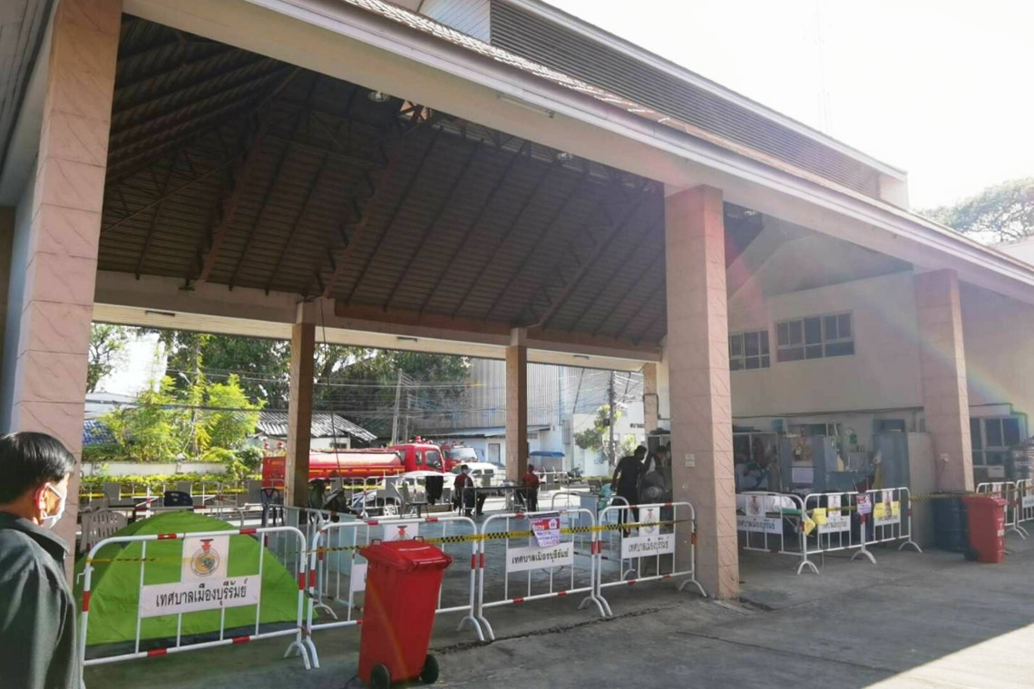 ปิดสถานีดับเพลิง เทศบาลเมืองบุรีรัมย์ ชั่วคราว หลังพนักงาน เจ้าหน้าที่ดับเพลิง ติดโควิดแล้ว 10 ราย และมีผู้สัมผัสเสี่ยงสูงอีก 15 ราย ประสานหน่วยงานท้องถิ่นข้างเคียงและกู้ภัย ออกระงับเหตุแทน กรณีมีเหตุอัคคีภัย วันที่ 23 กุมภาพันธ์ 2565 ที่อาคารงานป้องกันและบรรเทาสาธารณภัย (งานดับเพลิง) เทศบาลเมือง(ทม.)บุรีรัมย์ เจ้าหน้าที่ได้นำแผงเหล็กมากั้นปิดทางเข้า-ออกสถานที่กักตัวผู้สัมผัสเสี่ยงสูง พร้อมนำป้ายข้อความ ติดบนแผงเหล็กว่า “ประกาศคณะกรรมการโรคติดต่อจังหวัดบุรีรัมย์ ครอบครัวสีแดง กักตัว 14 วัน ตรวจหาเชื้อโควิด(SWAB) ทุก 7 วัน ตั้งแต่วันที่ 23 ก.พ.2565 ถึงวันที่ 5 มี.ค.2565” เนื่องจากเป็นกลุ่มเสี่ยงยกสถานีดับเพลิง ซึ่งก่อนหน้านี้ พบพนักงานเจ้าหน้าที่ดับเพลิง ชาย 1 ราย ติดโควิด ทางเจ้าหน้าที่สาธารณสุขอำเภอเมืองบุรีรัมย์ โรงพยาบาลบุรีรัมย์ และกองสาธารณสุขและสิ่งแวดล้อม เทศบาลเมืองบุรีรัมย์ จึงได้มาทำการตรวจคัดกรอง ATK เพื่อตรวจหาเชื้อโควิด-19 ให้กับพนักงาน เจ้าหน้าที่งานป้องกันและบรรเทาสาธารณภัย (งานดับเพลิง) เทศบาลเมืองบุรีรัมย์ จำนวนกว่า 20 คน เพื่อเป็นการสร้างความอุ่นใจให้กับพนักงาน เจ้าหน้าที่ และประชาชน เพื่อเป็นการป้องกัน เฝ้าระวังการแพร่ระบาดของเชื้อโควิด-19 ในสำนักงานเทศบาลเมืองบุรีรัมย์ ปรากฏว่า การตรวจครั้งแรก ผลบวก 4 ราย และครั้งที่สอง ล่าสุดวันนี้พบมีพนักงาน เจ้าหน้าที่ดับเพลิง ผลบวกอีก 5 ราย รวมพบพนักงานเจ้าหน้าที่ดับเพลิง มีผลเป็นบวก 10 ราย ติดเชื้อโควิด-19 นอกจากนี้ ยังมีพนักงานเจ้าหน้าที่ดับเพลิง ที่เป็นกลุ่มเสี่ยงสูง ต้องกักตัวอีก 15 ราย ทั้งนี้ ทางเทศบาลได้ส่งไปตรวจเพื่อเป็นการยืนยันผลตรวจอีกครั้งที่ รพ.บุรีรัมย์ ด้วยวิธี RT-PCR ส่วนมาตรการในการป้องกันกลุ่มเสี่ยงสูงเสี่ยงต่ำ ก็ใช้วิธีกักตัว เพื่อดูอาการตามมาตรการของกระทรวงสาธารณสุขอย่างเคร่งครัดต่อไป ขณะเดียวกัน ทางเทศบาลเตรียมทำหนังสือถึงจังหวัด พร้อมกับร้องขอหน่วยข้างเคียงออกระงับเหตุแทน กรณีมีเหตุอัคคีภัยเกิดขึ้น เนื่องจากกลุ่มเสี่ยงสูงถูกกักตัวทั้งหมด ช่วงบ่ายวันนี้ (23ก.พ.) นายสกล ไกรรณภูมิ นายกเทศมนตรีเมืองบุรีรัมย์ มอบหมายให้ นายสมศักดิ์ ธีระวิวัฒนกิจ รองนายกเทศมนตรีเมืองบุรีรัมย์ ตรวจเยี่ยมให้กำลังใจพนักงาน เจ้าหน้าที่ดับเพลิง พร้อมกำชับให้ปฏิบัติตัวดูอาการตามมาตรการของกระทรวงสาธารณสุขอย่างเคร่งครัด ขณะที่ สำนักงานสาธารณสุขจังหวัดบุรีรัมย์ รายงานข้อมูลสถานการณ์แพร่ระบาดของโรคติดเชื้อไวรัสโควิด-19 หรือ (โควิด-19) ระลอกใหม่ มกราคม ต