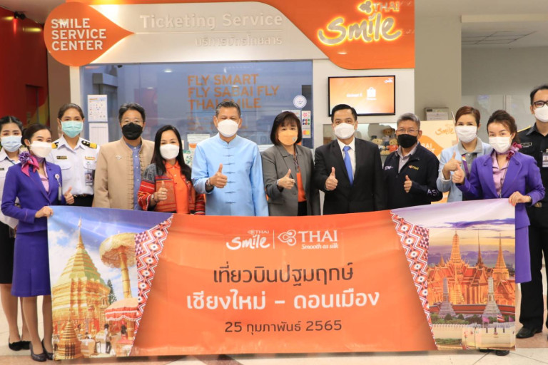 วันที่ 25 กุมภาพันธ์ 2565 นายวิจิตต์ แก้วไทรเทียม ผู้อำนวยการท่าอากาศยานเชียงใหม่ นายการันต์ ธนกุลจีรพัฒน์ รองผู้อำนวยการท่าอากาศยานเชียงใหม่ (สายสนับสนุนธุรกิจ) พร้อมด้วยผู้บริหารและพนักงานท่าอากาศยานเชียงใหม่ ร่วมพิธีเปิดเที่ยวบินปฐมฤกษ์ของสายการบินไทยสมายล์แอร์เวย์ เส้นทางเชียงใหม่-ดอนเมือง เที่ยวบินที่ WE 1175 ณ บริเวณเคาน์เตอร์เช็คอินสายการบินไทยสมายล์ โดยมีนายวรญาณ บุญณราช รองผู้ว่าราชการจังหวัดเชียงใหม่ ร่วมพิธีด้วย