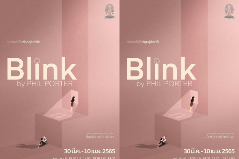 ภาควิชาศิลปการละคร คณะอักษรศาสตร์ จุฬาลงกรณ์มหาวิทยาลัย ขอเชิญชมละครเวทีเรื่อง Blink จากบทประพันธ์ของ Phil Porter กำกับการแสดงโดย ภัสสร์ศุภางค์ คงบำรุง เข้าชมฟรี โดยไม่มีค่าใช้จ่ายใดๆ เปิดการแสดงรอบแรก วันที่ 30 มีนาคม 2565 ณ ศูนย์ศิลปการละครสดใส พันธุมโกมล ชั้น 6 อาคารมหาจักรีสิรินธร คณะอักษรศาสตร์ จุฬาลงกรณ์มหาวิทยาลัย