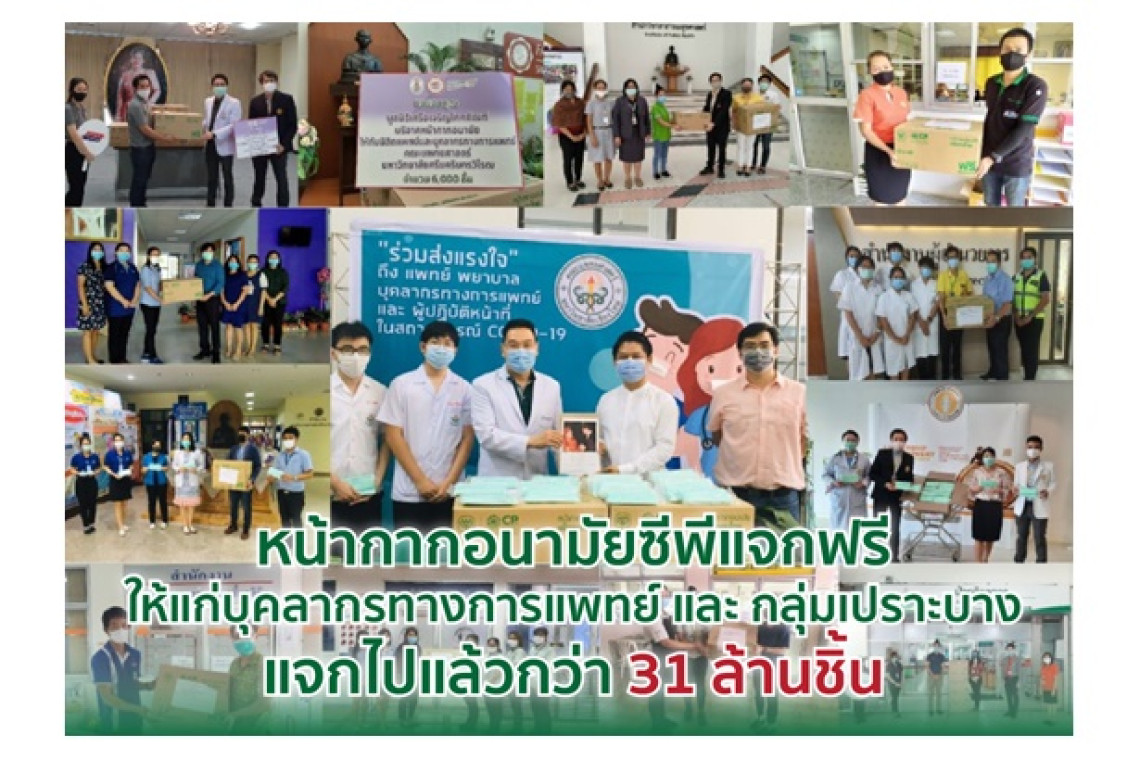 "ซีพี" ออกแถลงการณ์ชี้แจงหน้ากากอนามัยฟรี วอนอย่าแชร์ข่าวเท็จวางขายในเซเว่น ล่าสุดแจกฟรีให้กับบุคลากรทางการแพทย์ และ กลุ่มเปราะบางไปแล้วกว่า 31 ล้านชิ้น ต่อเนื่องเกือบ 2 ปี