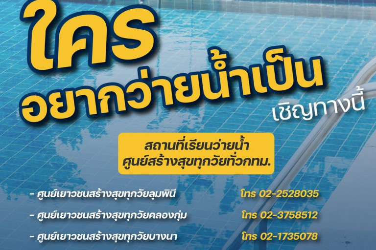 ร.ต.อ.พงศกร ขวัญเมือง โฆษกกทม. โพสต์ผ่านเฟซบุ๊กระบุ "อุบัติเหตุเป็นสิ่งที่ไม่สามารถคาดเดาได้ว่าจะเกิดขึ้นเมื่อใด ดังนั้น เพื่อเพิ่มความปลอดภัยในชีวิต และลดการเกิดความสูญเสียจากอุบัติเหตุทางน้ำ กทม.ได้จัดให้มีสระว่ายน้ำที่ได้มาตรฐานสำหรับฝึกหัดว่ายน้ำ และมีครูสอนสำหรับเยาวชน และคนทั่วไปที่สนใจ ที่ศูนย์สร้างสุขทุกวัย ซึ่งขณะนี้เปิดบริการแล้ว 6 แห่ง สามารถใช้บริการได้ เพียงสมัครสมาชิกรายปีเพื่อทำกิจกรรมต่างๆ ภายในศูนย์ รวมถึงว่ายน้ำโดยชำระค่าลงสระในราคาเริ่มต้น 10-60 บาท