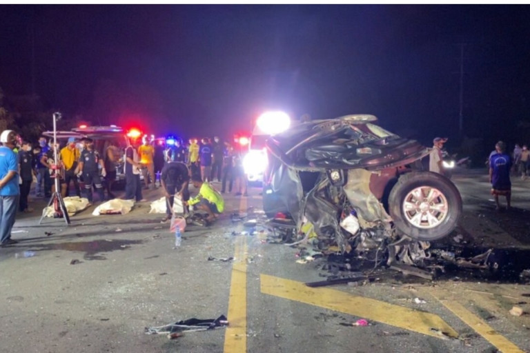 ที่เกิดเหตุพบรถกระบะ มิตซูบิชิ ไทรทัน ทะเบียน กฉ 4618 ฉะเชิงเทรา สภาพพลิกตะแคงข้างพังยับเยินเสียหายทั้งคัน ภายในรถมีผู้เสียชีวิตชาย 1 ราย ทราบชื่อต่อมา คือ นายสมเจต อายุ 46 ปี ชาวฉะเชิงเทรา เป็นผู้ขับขี่ ห่างกันไปเล็กน้อยพบรถยนต์ ยี่ห้อมิตซูบิชิ ปาเจโร่ ทะเบียน 4 กญ 2289 กรุงเทพมหานคร สภาพพังเสียหายยับเยินเช่นเดียวกัน ภายในรถพบผู้เสียชีวิตอีก 2 ราย ศพแรกเป็นชาย อายุประมาณ 45 ปี เป็นผู้ขับขี่ ส่วนเบาะข้างคนขับยังพบศพหญิงตั้งครรภ์ 3 เดือน เสียชีวิตอีก 1 ราย
