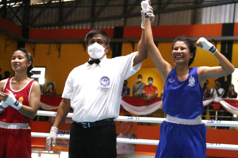 วันนี้ (147 มี.ค.2565) ผู้สื่อข่าวรายงานการแข่งขันกีฬาแห่งชาติครั้งที่ 47 "ศรีสะเกษเกมส์" 2565 "น้องมายด์" เอเปค บุตรดี ขุนพลเสื้อกล้ามไทย จากจังหวัดศรีสะเกษ โชว์ฟอร์มสมกับเป็นอดีตนักมวยเยาวชายหญิงยอดเยี่ยม ปี 2562 เอาชนะ ณัฐชา ศิลปกิจ (นครราชสีมา) คว้าเหรียญทองให้กับทัพนักชกจากศรีสะเกษ ส่วนผลการแข่งขันรุ่นอื่น ๆ มีดังนี้ รุ่นพินเวทหญิง (น้ำหนักเกิน 42 กก. แต่ไม่เกิน 45 กก.) เหรียญทองได้แก่ ศิริวรรณ พึ่งปัญญา (นครราชสีมา) เอาชนะ RSC เสาวลี พรหมณี (กรุงเทพมหานคร) ในยกที่ 1, รุ่นฟลายเวทหญิง (น้ำหนักเกิน 48 กก. แต่ไม่เกิน 51 กก.) เหรียญทองได้แก่ สวรรยา ศรีสวัสดิ์ (พิษณุโลก) ชนะคะแนน จุฑามาศ ทานุกรม (อุบลราชธานี), รุ่นแบนตั้มเวทหญิง (น้ำหนักเกิน 51 กก. แต่ไม่เกิน 54 กก.) เหรียญทองได้แก่ กิตติยา นามไพร (นครราชสีมา) ชนคะแนน ยุพารัตน์ เพ็งพิทักษ์ (ขอนแก่น), รุ่นเฟเธอร์เวทหญิง (น้ำหนักเกิน 54 กก. แต่ไม่เกิน 57 กก.) เหรียญทองได้แก่ นภเกตน์ ศรีสวัสดิ์ (พิษณุโลก) ชนะคะแนน บุณยานุช ม้าชัย (อ่างทอง), รุ่นไลท์เวทหญิง (น้ำหนักเกิน 57 กก. แต่ไม่เกิน 60 กก.) เหรียญทองได้แก่ จีระพักตร อินทร์คำ (ร้อยเอ็ด) ชนะคะแนน ชลิดา ศรีเชียงพิมพ์ (ศรีสะเกษ), รุ่นไลท์เวลเตอร์เวทหญิง (น้ำหนักเกิน 60 กก. แต่ไม่เกิน 64 กก.) เหรียญทองได้แก่ อุมาวดี คงสันเทียะ (นครศรีธรรมราช) ชนะคะแนน สุวนันท์ อันทะนัย (สมุทรปราการ), รุ่นเวลเตอร์เวทหญิง (น้ำหนักเกิน 64 กก. แต่ไม่เกิน 69 กก.) เหรียญทองได้แก่ จันทิดา สุขาเขิน (พังงา) ชนะคะแนน ธันย์ชนก ศักดิ์ศรี (นครรราชสีมา), รุ่นมิดเดิลเวทหญิง (น้ำหนักเกิน 69 กก. แต่ไม่เกิน 75 กก.) เหรียญทองได้แก่ สุชาดา พานิช (อุดรธานี) ชนะคะแนน นิตยา ป้อพันธุ์ดุง (นครสวรรค์) รุ่นพินเวทชาย (น้ำหนักเกิน 42 กก. แต่ไม่เกิน 46 กก.) เหรียญทองได้แก่ รติพงษ์ คำท้าว (พิษณุโลก) ชนะคะแนน มาโนช หลักทอง (อุบลราชธานี), รุ่นฟลายเวทชาย (น้ำหนักเกิน 49 กก. แต่ไม่เกิน 52 กก.) เหรียญทองได้แก่ ทัตดนัย เริกชัย (ศรีสะเกษ) ชนะคะแนน รวิช ธรรมบุตรสกุล (แม่ฮ่องสอน), รุ่นแบนตั้มเวทชาย (น้ำหนักเกิน 52 กก. แต่ไม่เกิน 56 กก.) เหรียญทองได้แก่ กฤษฎา ทองขำ (ชุมพร) ชนะคะแนน วัฒนะ โพธิ์สุวรรณ (สระบุรี), รุ่นไลท์เวทชาย (น้ำหนักเกิน 56 กก. แต่ไม่เกิน 60 กก.) เหรียญทองได้แก่ วันชัย ระห้อย (พิษณุโลก) ชนะคะแนน โชคชัย นครีวงค์ (ศรีสะเกษ), รุ่นไลท์เวลเตอร์เวทชาย (น้ำหนักเกิน 60 กก. แต่ไม่เกิน 64 กก.) เหรียญทองได้แก่ อัศยุทธ เสียงล้ำ (พิษณุโลก) ชนะคะแนน สังขพงศ์ โฉมยงค์ (ชุมพร), รุ่นเวลเตอร์เวทชาย (น้ำหนักเกิน 64 กก. แต่ไม่เกิน 69 กก.) เหรียญทองได้แก่ พัดยศ เกียรติเจริญศิริ (ศรีสะเกษ) ชนะคะแนน ศรัณย์ ศรีอ่วมบู่ (สุพรร