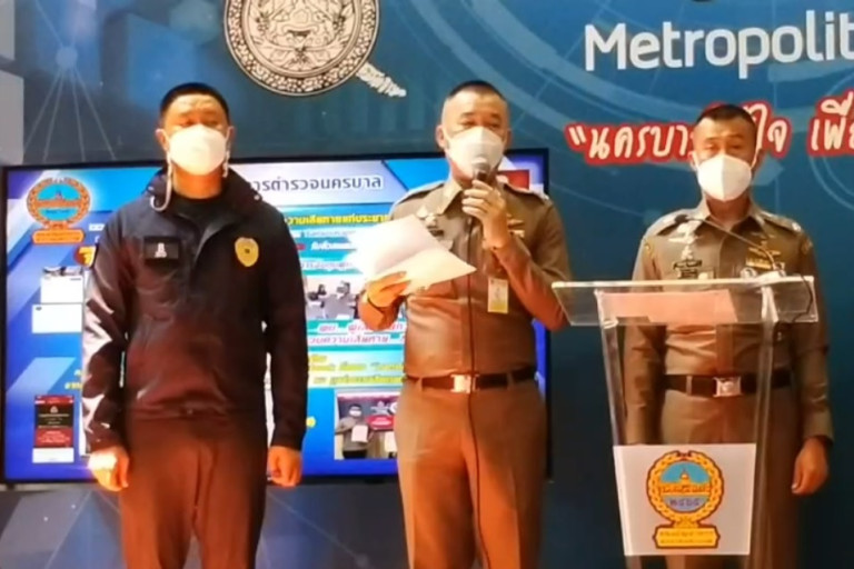 วันนี้ (16 มี.ค.) เมื่อเวลา 13.00 น. ที่ กองบัญชาการตำรวจนครบาล หรือ บชน. พล.ต.ท.สําราญ นวลมา ผบช.น. พล.ต.ต.โชคชัย งามวงศ์ พล.ต.ต.พิทักษ์ อุทัยธรรม รอง ผบช.น. พล.ต.ต.มานพ สุคนธ์ธนพัฒน์ ผบก.น.8 สั่งการให้ พ.ต.อ.นิภพล สุขนิยม ผกก.กก.สส.บก.น.8, พ.ต.อ.ฉัฐกิตติ์ ผดุงจันทร์ธนัย ผกก.สน.สําเหร่ พร้อมด้วยเจ้าหน้าที่ตํารวจของ กก.สส.บก.น.8 และ สน.สําเหร่ ร่วมจับกุม น.ส.นันทวัน วงษสุวรรณ อายุ 21 ปี จับกุมได้บริเวณบ้านแห่งหนึ่ง ม.6 ต.หัวไผ่ อ.เมือง จ.อ่างทอง ส่วนนายยงยุทธ ศาสตร์สัมฤทธิ์ อายุ 37 ปี, นายธีรพงศ์ น้อยเพ็ง อายุ 21 ปี, นางเพ็ญอนงค์ แก้วเจริญ อายุ 61 ปี เข้ามอบตัวที่กก.สส.บก.น.8