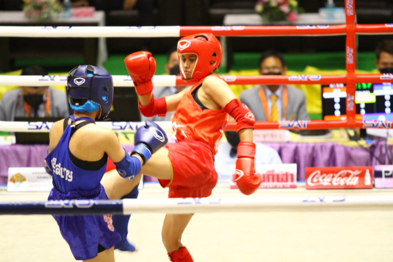 วันนี้ (23 มี.ค.2565) ผู้สื่อข่าวรายงานการแข่งขันกีฬาแห่งชาติครั้งที่ 47 "ศรีสะเกษเกมส์" 2565 การแข่งขันมวยไทยสมัครเล่น อภิชญา เลขมาศ จากสุราษฎร์ธานี คว้าเหรียญทอง รุ่นพินเวท บุคคลหญิง (น้ำหนักเกิน 42 กก. แต่ไม่เกิน 45 กก.) ด้วยการเอาชนะ เยาวภา ผสมวงค์ จากศรีสะเกษ 2-1 เสียง ส่วนผลการแข่งขันคู่อื่น ๆ มีดังนี้ มวยไทยสมัครเล่น รุ่นไลท์ฟลายเวท บุคคลหญิง (น้ำหนักเกิน 45 กก. แต่ไม่เกิน 48 กก.) เหรียญทอง ได้แก่ ธนวรรณ ทองดวง (กรุงเทพมหานคร) ชนะ RSC เปมิกา หยิกยี่ (ตรัง) ในยกที่ 3, รุ่นฟลายเวท บุคคลหญิง (น้ำหนักเกิน 48 กก. แต่ไม่เกิน 51 กก.) เหรียญทอง ได้แก่ วรรณสว่าง ศรีละออ (สุรินทร์) ชนะ ปัทมพร แซ่เตี่ยว (ชุมพร), รุ่นแบนตั้มเวท บุคคลหญิง (น้ำหนักเกิน 51 กก. แต่ไม่เกิน 54 กก.) เหรียญทอง ได้แก่ รุ่งนภา ถัตถานาลัย (นครพนม) ชนะ รุจิรา วงษ์ศรีวอ (สมุทรสาคร), รุ่นเฟเธอร์เวท บุคคลหญิง (น้ำหนักเกิน 54 กก. แต่ไม่เกิน 57 กก.) เหรียญทอง ได้แก่ กันติยา ประโนรัมย์ (บุรีรัมย์) เอาชนะ RSC สุธาทิพย์ ทองตรีพันธุ์ (ตรัง) ในยกที่ 3, รุ่นไลท์เวท บุคคลหญิง (น้ำหนักเกิน 57 กก. แต่ไม่เกิน 60 กก.) เหรียญทอง ได้แก่ ศิริโสภา ศิริศักดิ์ (กรุงเทพมหานคร) ชนะคะแนน พิลัยวรรณ กาญจนะ (สุราษฎร์ธานี) 3-0 เสียง, รุ่นไลท์เวลเตอร์เวท บุคคลหญิง (น้ำหนักเกิน 60 กก. แต่ไม่เกิน 63.5 กก.) วัลยา ป้องทา (สมุทรสงคราม) ชนะ สภัสสร ทองดี (ศรีสะเกษ), รุ่นฟลายเวท บุคคลชาย (น้ำหนักเกิน 48 กก. แต่ไม่เกิน 51 กก.) ธรรศปวีร์ มาตสม (กระบี่) ชนะคะแนน ธนกฤต โตพุนพิน (ชุมพร) 3-0 เสียง, รุ่นไลท์เฮฟวี่เวท บุคคลชาย (น้ำหนักเกิน 75 กก. แต่ไม่เกิน 81 กก.) เหรียญทอง ภาณุพงศ์ เกษแก้ว (ระนอง) ชนะ ศราวุฒิ แสงดาว (นครราชสีมา)