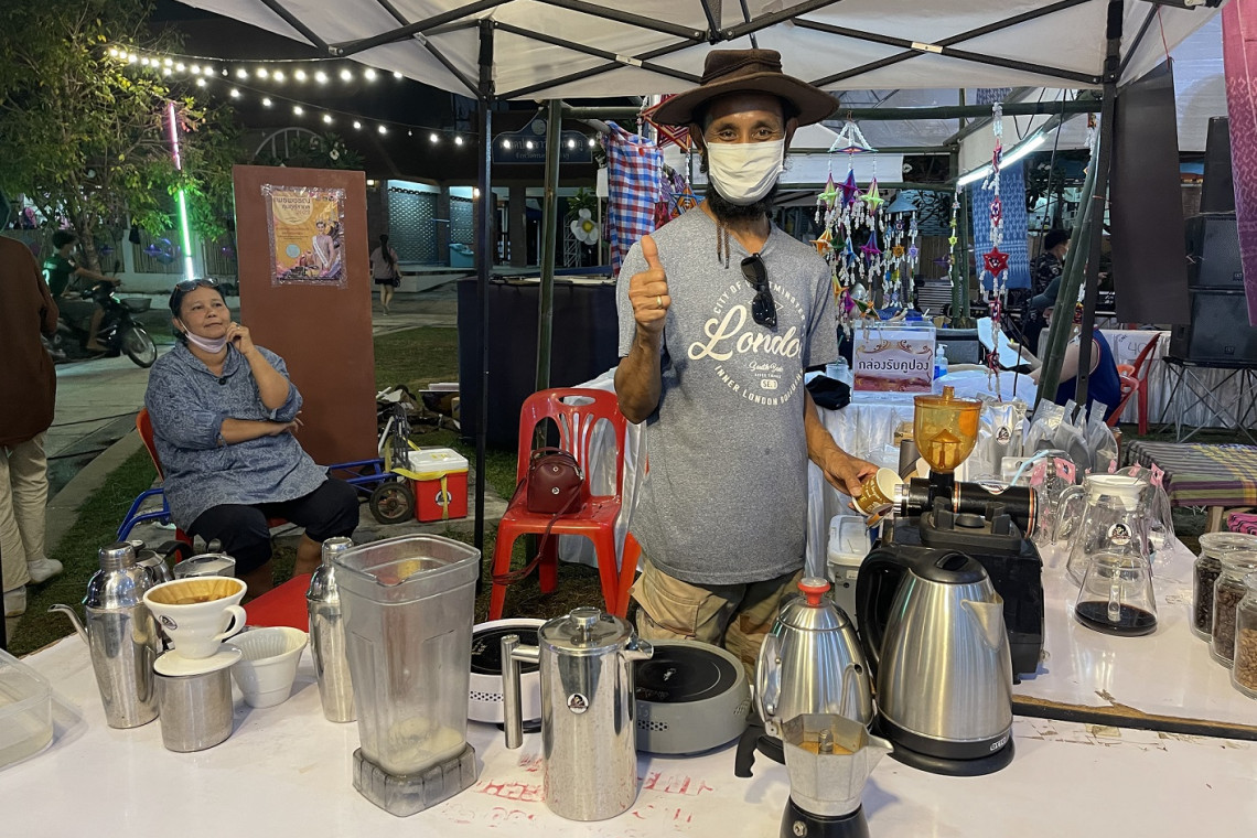 พร้อมกันนี้ได้เริ่มหัดคั่วภาชนะที่เลือกใช้คือหม้อดิน เพราะเป็นภาชนะที่ทุกคนเข้าถึงได้ราคาถูก วันข้างหน้าลุงหวังก็จะสามารถถ่ายทอดความรู้การคั่วกาแฟให้คนในชุมชน สิ่งที่ได้จากหม้อดินก็จะเป็นเรื่องของสุขภาพ เพราะหม้อดินทำจากวัสดุจากธรรมชาติที่ใช้สืบทอดกันมาแต่โบราณ กาแฟที่ได้จะมีความหอมและรสชาติอีกมิตินึง ที่หม้อโลหะไม่มี เป็นรสชาติที่เป็นเอกลักษณ์ของหม้อดิน ลุงหวังได้เริ่มทดลองคั่วด้วยเตาถ่าน ลองผิดลองถูกหมดเมล็ดกาแฟไปหลายกิโล สุดท้ายก็ได้กาแฟที่หอมกรุ่นละมุนไม่เหมือนใคร