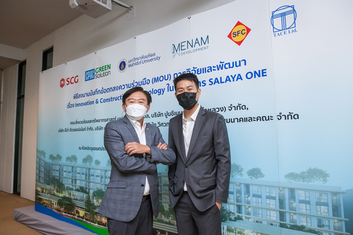 บริษัท มีนำ ดีเวลลอปเม้นท์ จำกัด (MENAM) นำโดย นายเดชา ตั้งสิน ประธานกรรมการบริหาร ผนึกกำลังพันธมิตร รศ.ดร.สุระ พัฒนเกียรติ คณบดีคณะสิ่งแวดล้อมและทรัพยากรศาสตร์ มหาวิทยาลัยมหิดล, นายสยามรัฐ สุทธานุกูล Chief Marketing Officer บริษัท ผลิตภัณฑ์และวัตถุก่อสร้าง จำกัด ในนามตัวแทน บริษัทปูนซิเมนต์ไทย (ท่าหลวง) จำกัด, นพ.เชิดศักดิ์ อัมพรสุขสกุล Managing Director บริษัท แสงฟ้าก่อสร้าง จำกัด และรศ.ดร.ต่อตระกูล ยมนาค ประธานกรรมการบริหาร บริษัท วิศวกรที่ปรึกษาต่อตระกูล ยมนาคและคณะ จำกัด ร่วมลงนามบันทึกความเข้าใจ (Memorandums of Understanding) ความร่วมมือในการวิจัยและพัฒนา Innovation & Construction Technology ในโครงการ ศาลายา วัน เรสซิเดนท์ (SALAYA ONE RESIDENCES) ซอยตั้งสิน จังหวัดนครปฐม เพื่อต่อยอดการประยุกต์ใช้นวัตกรรมและเทคโนโลยีการก่อสร้างสมัยใหม่ที่เป็นมิตรกับสิ่งแวดล้อม เป็นแหล่งเรียนรู้ทางการศึกษา รวมถึงช่วยยกระดับมาตรฐานที่พักอาศัยแห่งอนาคต พร้อมสร้างคุณภาพชีวิตที่ดีกว่าของทั้งผู้อยู่อาศัยและสิ่งแวดล้อมที่ยั่งยืนอย่างเป็นทางการ